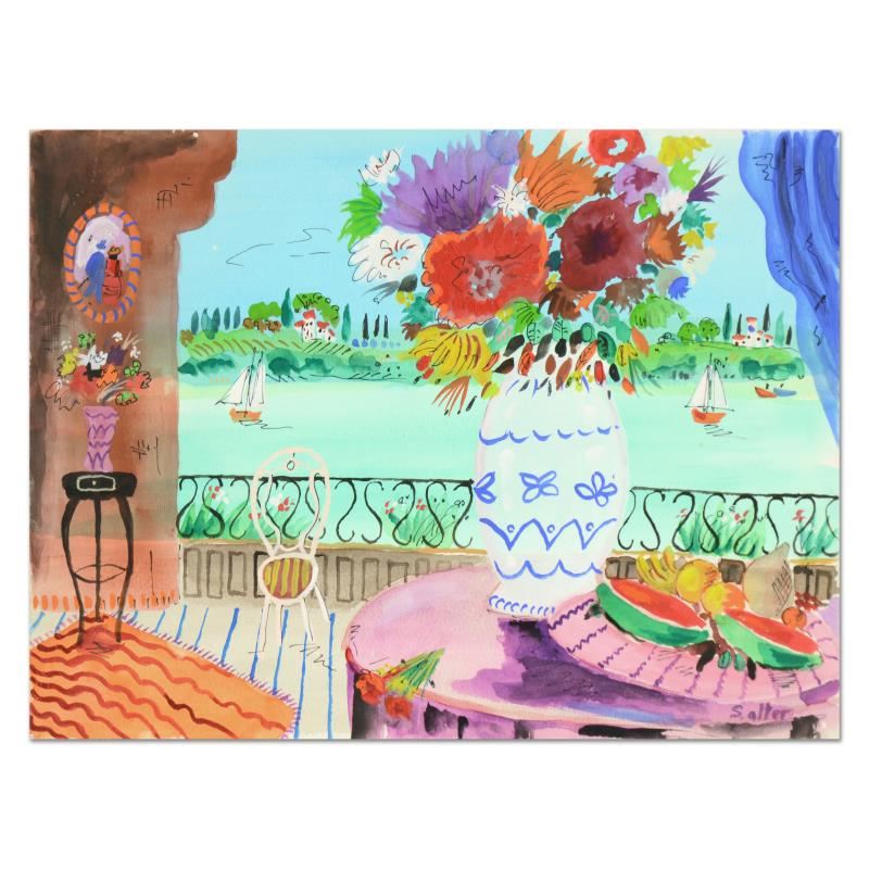 This is an original watercolor painting on paper by Shlomo Alter, hand signed by the artist. Includes Letter of Authenticity. Measures approx. 16" x 12" (image).