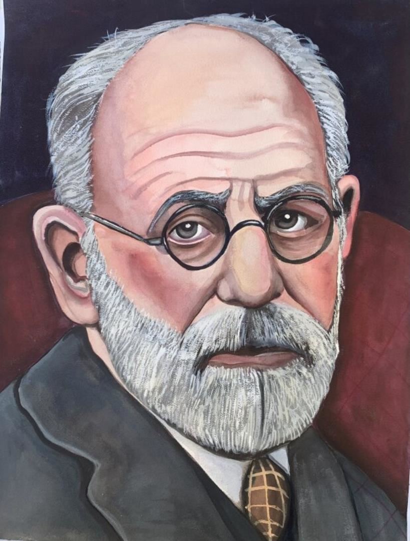 A pastel & watercolor portrait of the famed psychoanalysist Sigmund Freud. 24x18" on deckled fine art paper, by Anonymous