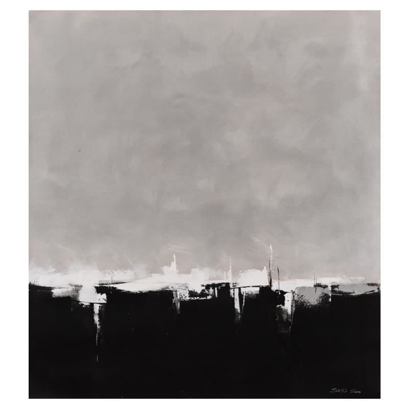 "Silver Harbor" is an original acrylic painting on canvas by Richard Leung, hand signed by the artist. Includes Letter of Authenticity. Measures approx. 35" x 39" (image).