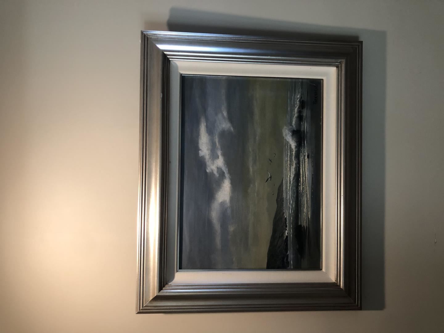 Beautifully framed, this stunning seacoast painting was purchased at Parkhurst's studio in San Pedro, CA. 18 x24" w/COA.