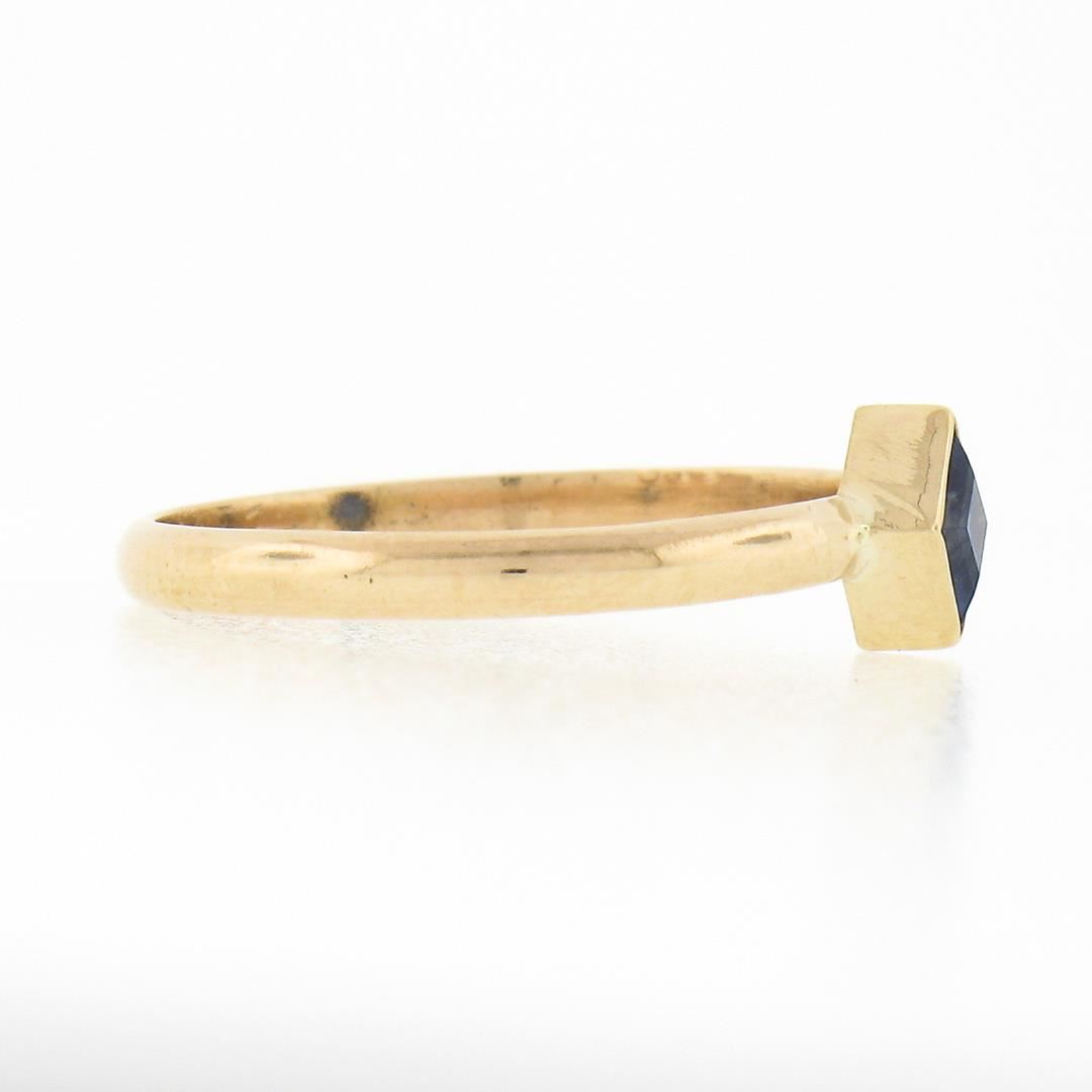 A solid 14k yellow gold petite solitaire ring, with1 square cut natural sapphire (0.35ct). The ring is size 5.0, weighs a total of 1.24 grams, and measures 5.60mm wide.