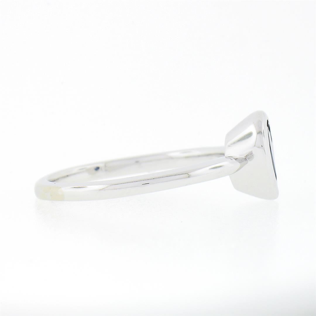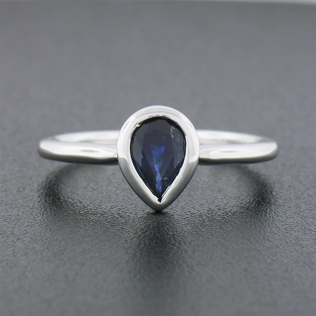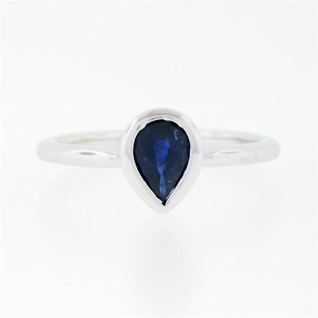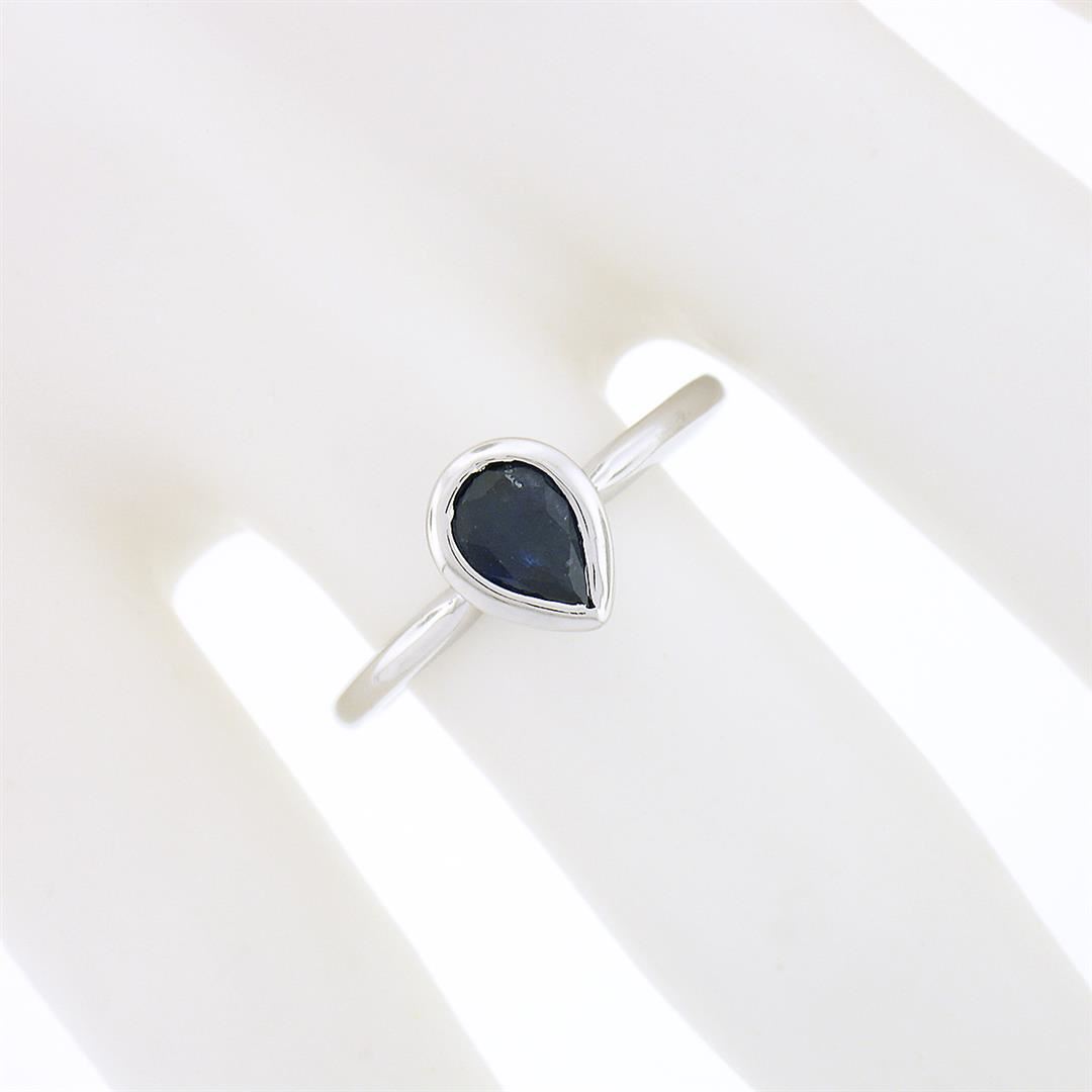 A solid 14k white gold petite solitaire ring, with 1 pear cut natural sapphire (6.5x4.5mm - 0.70ct ). The ring is size 7.0, weighs a total of 2.97 grams, and measures 8.56mm wide.