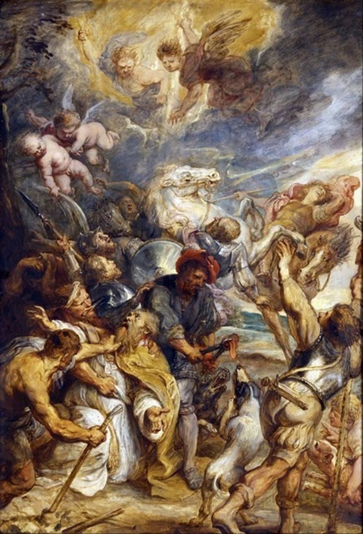 Artist: Sir Peter Paul Rubens - Title: The Martyrdom of Saint Livinus - Medium: Fine Art Reproduction Giclee on Canvas - Image Size: Approximately 32 inches x 21.75 inches - Unframed on Unstretched Canvas - Biography: Sir Peter Paul Rubens (28 June 1577 - 30 May 1640) was a Flemish artist and diplomat from the Duchy of Brabant in the Southern Netherlands (modern-day Belgium) who lived during the Dutch Golden Age. He is considered the most influential artist of the Flemish Baroque tradition. Sir Peter Paul Rubens's highly charged compositions reference erudite aspects of classical and Christian history. His unique and immensely popular Baroque style emphasized movement, colour, and sensuality, which followed the immediate, dramatic artistic style promoted in the Counter-Reformation. Sir Peter Paul Rubens was a painter producing altarpieces, portraits, landscapes, and history paintings of mythological and allegorical subjects. He was also a prolific designer of cartoons for the Flemish tapestry workshops and of frontispieces for the publishers in Antwerp.