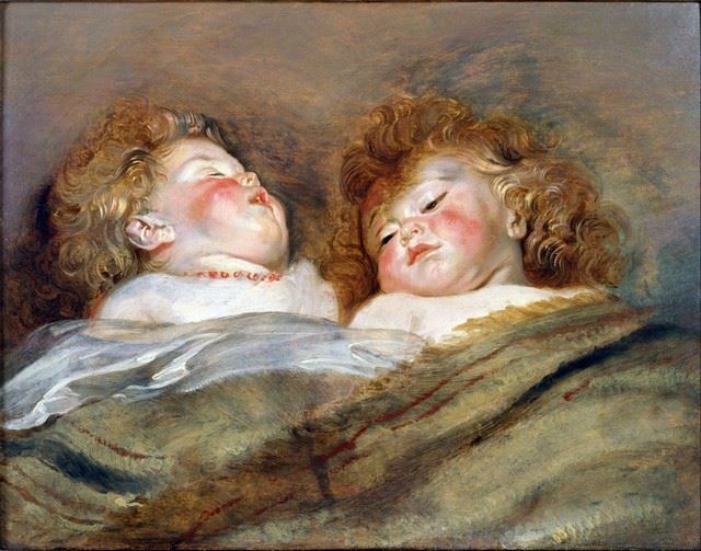 Artist: Sir Peter Paul Rubens - Title: Two Sleeping Children - Medium: Fine Art Reproduction Giclee on Canvas - Image Size: Approximately 25 inches x 32 inches - Unframed on Unstretched Canvas - Biography: Sir Peter Paul Rubens (28 June 1577 - 30 May 1640) was a Flemish artist and diplomat from the Duchy of Brabant in the Southern Netherlands (modern-day Belgium) who lived during the Dutch Golden Age. He is considered the most influential artist of the Flemish Baroque tradition. Sir Peter Paul Rubens's highly charged compositions reference erudite aspects of classical and Christian history. His unique and immensely popular Baroque style emphasized movement, colour, and sensuality, which followed the immediate, dramatic artistic style promoted in the Counter-Reformation. Sir Peter Paul Rubens was a painter producing altarpieces, portraits, landscapes, and history paintings of mythological and allegorical subjects. He was also a prolific designer of cartoons for the Flemish tapestry workshops and of frontispieces for the publishers in Antwerp.