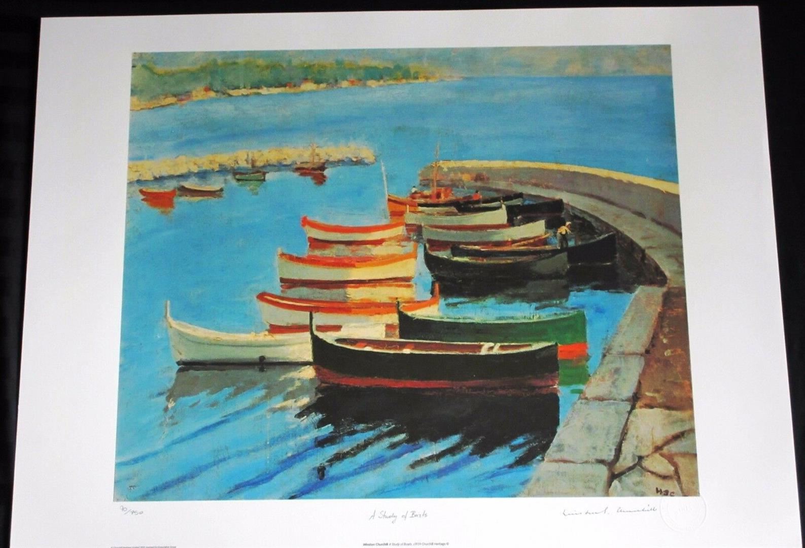 Sir Winston Churchill "Study of Boats" Facsimile Signed and Numbered Limted Edition Lithograph Dimensions: 16.5 x 20 inches (Note: edition number received may differ from photo)