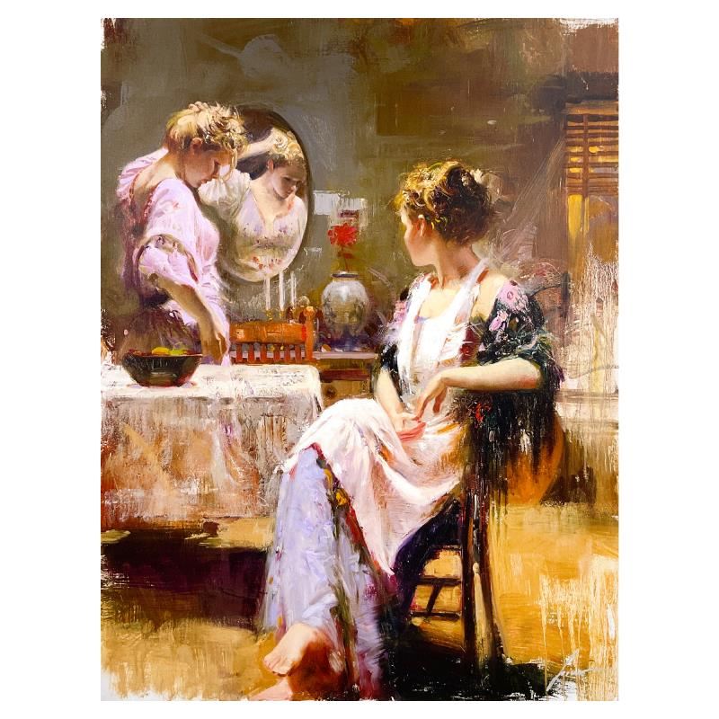 "Sisters" is a limited edition giclee on canvas by Pino (1939-2010), numbered and hand signed by the artist. Includes Certificate of Authenticity. Measures approx. 40" x 30" (image).
