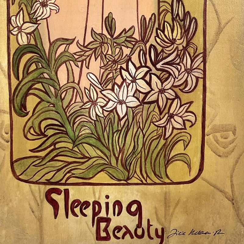 "Sleeping Beauty" is a limited Japanese edition giclee on canvas by Tricia Buchanan-Benson, numbered and hand signed by the artist. This piece is licensed by Disney Fine Art. Includes Letter of Authenticity. Measures approx. 12" x 24" (image).