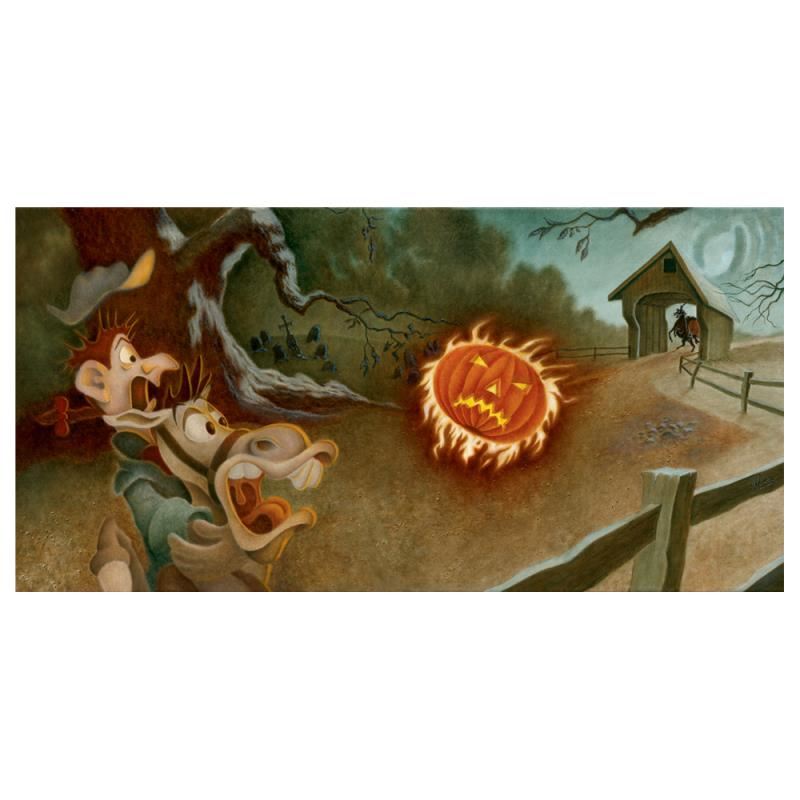 "Sleepy Hollow" is a framed limited edition giclee on canvas, numbered and hand signed by Mike Kupka. This piece is licensed by Disney Fine Art. This piece has a 2" border and may be either framed or gallery wrapped based on preference. Includes Certificate of Authenticity! Measures approx. 24" x 12" (image).