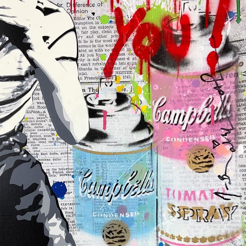 "Smile" is a mixed media original on deckle edge paper by Mr. Brainwash, hand signed and bearing the thumbprint of the artist inverso. This piece comes custom framed. Includes Certificate of Authenticity. Measures approx. 26" x 34" (frame), 22" x 30" (image).