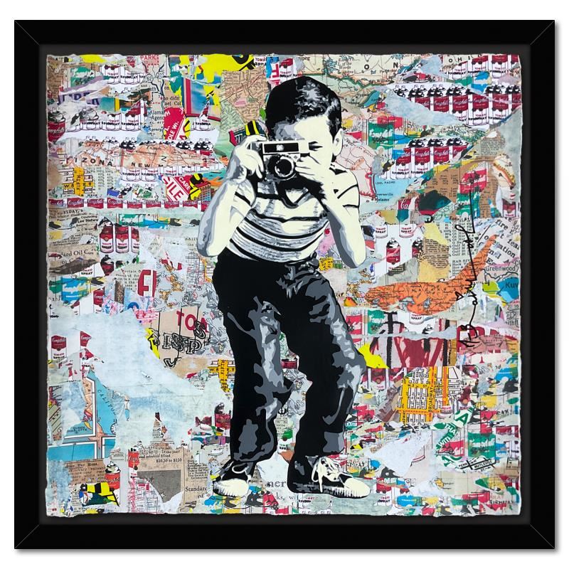 "Smile" is a unique (UNIQ) mixed media on deckle edge paper by Mr. Brainwash, hand signed and bearing the thumbprint of the artist inverso. This piece comes custom framed. Includes Certificate of Authenticity. Measures approx. 26" x 26" (frame), 22" x 22" (image). This item requires special handling and may have a longer than usual turnaround.