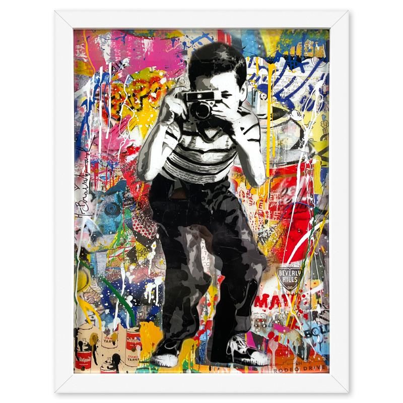 "Smile" is an offset lithograph on paper by Mr. Brainwash, bearing the plate signature of the artist. This piece comes custom framed. Measures approx. 26" x 20" (frame), 23.5" x 17.5" (image).