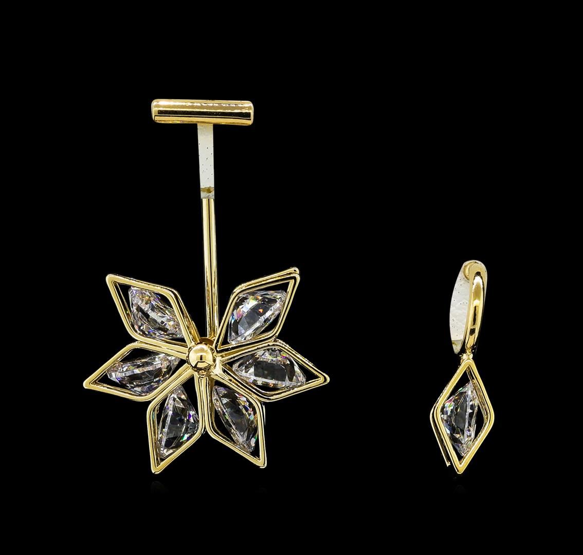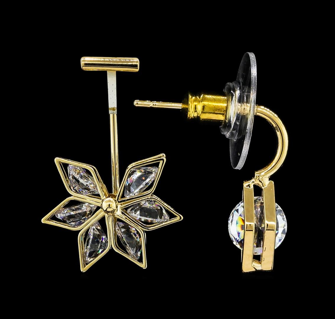High end designer jewelry. Snow Flake Crystal Earrings - Gold Plated. Gold Plated/1" Dangle. Gold/ Clear. Post.