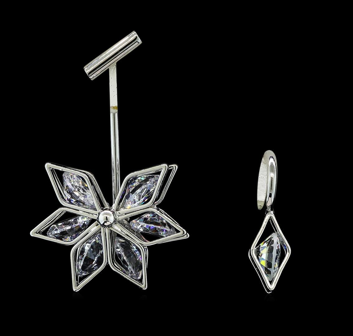 High end designer jewelry. Snow Flake Crystal Earrings - Silver Plated. Silver Plated/1" Dangle. Silver/ Clear. Post.