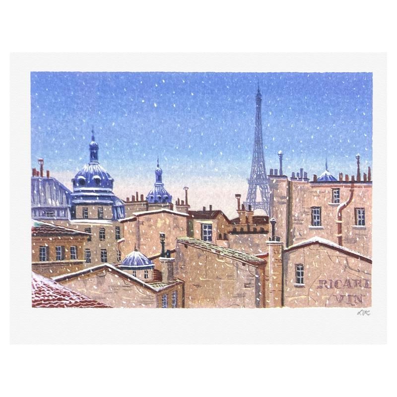 "Snowfall in Paris" is a limited edition lithograph on paper by Liudmila Kondakova, hand signed by the artist. Includes Letter of Authenticity. Measures approx. 6" x 7" (border), 3" x 4" (image).