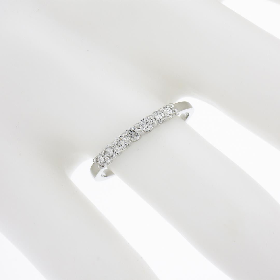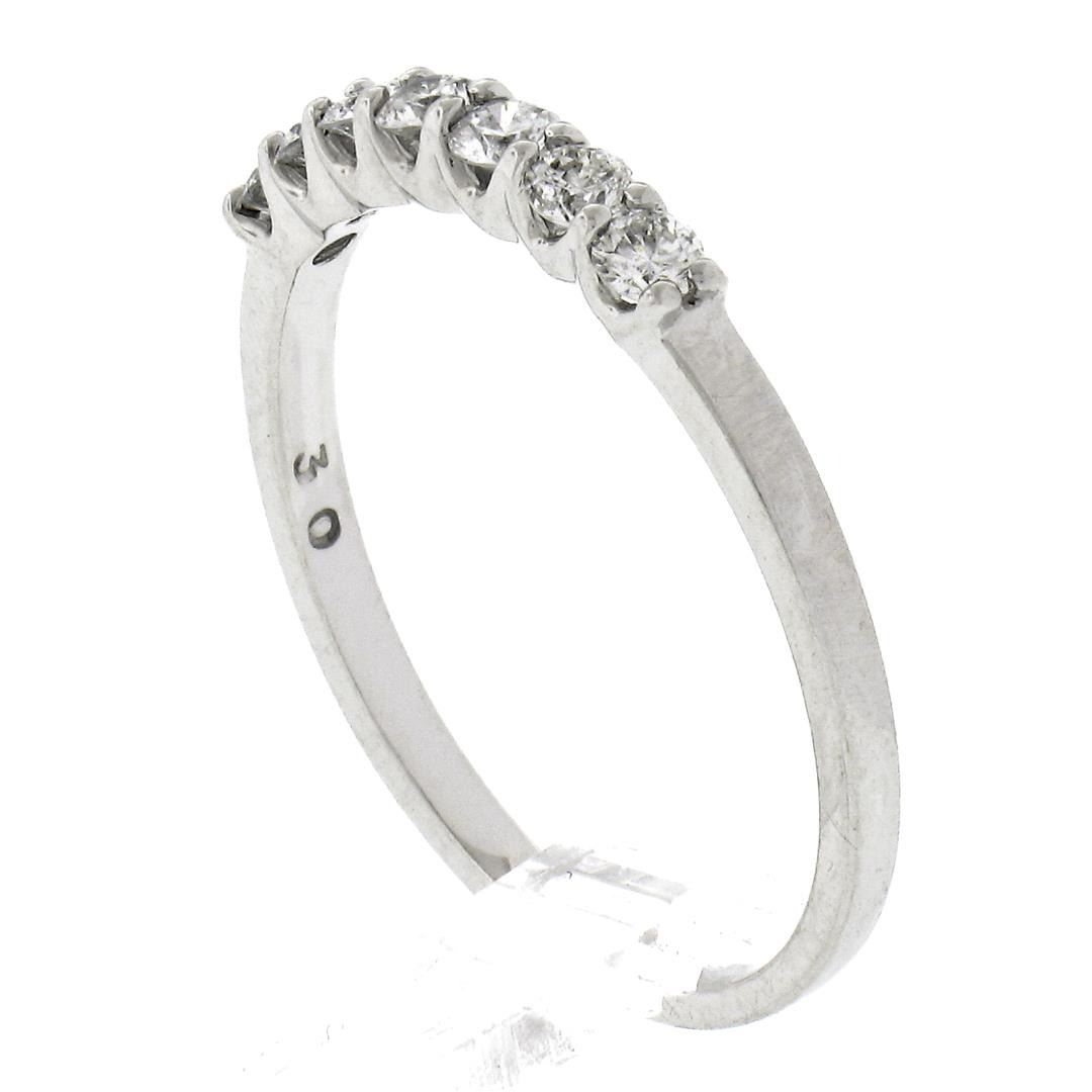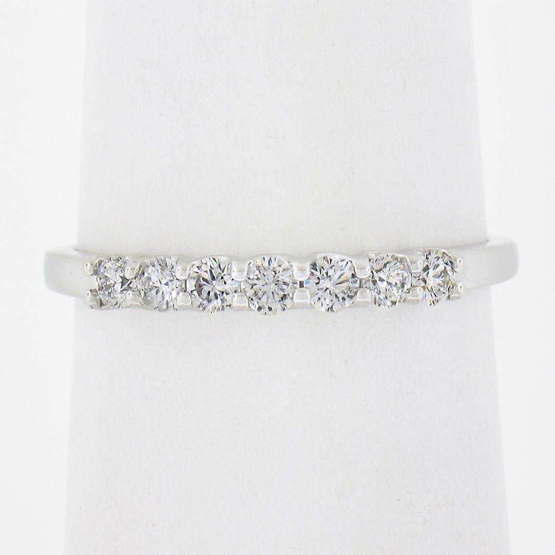 A solid 14k white gold band ring, with 7 round cut natural diamonds (G/H - SI1/SI2 ; 0.30ctw). The ring is size 6.5, weighs a total of 1.47 grams, and measures 2.3mm wide.