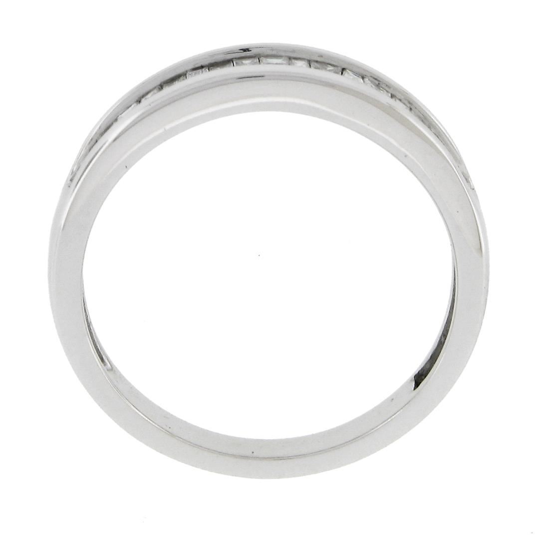 A solid 14k white gold stack band ring, with 19 baguette cut natural diamonds (F/G - SI1-I2 ; 0.60ctw). The ring is size 7.0, weighs a total of 2.83 grams, and measures 4.6mm wide.