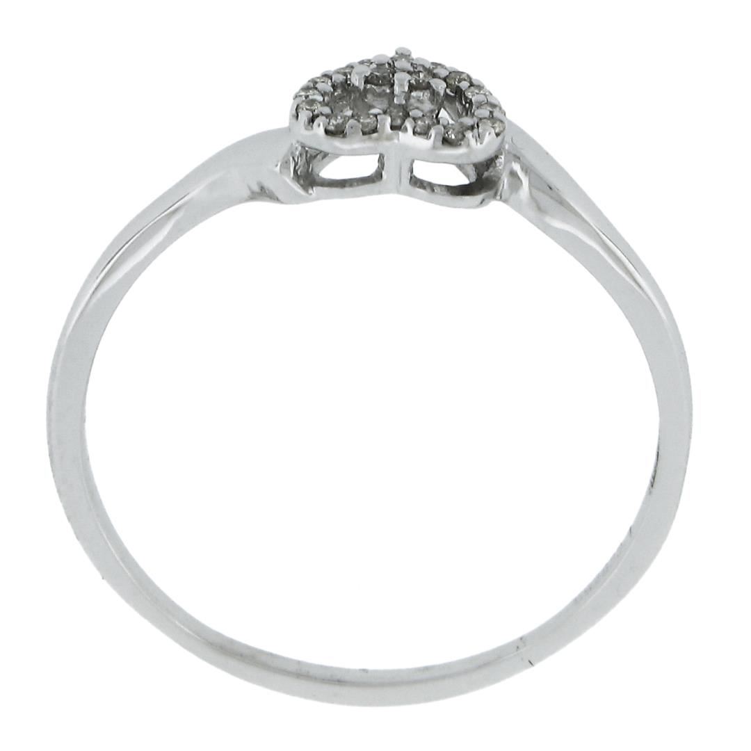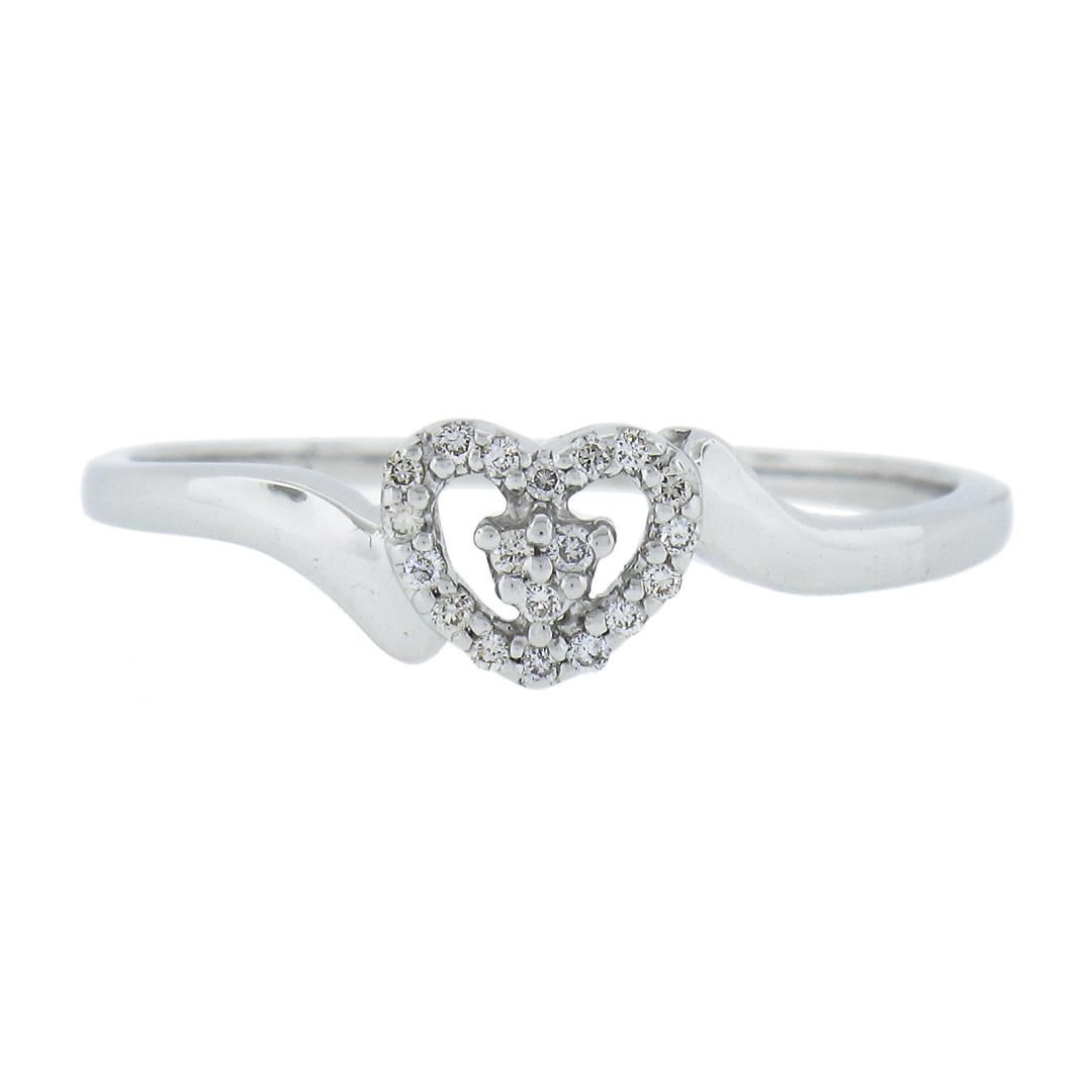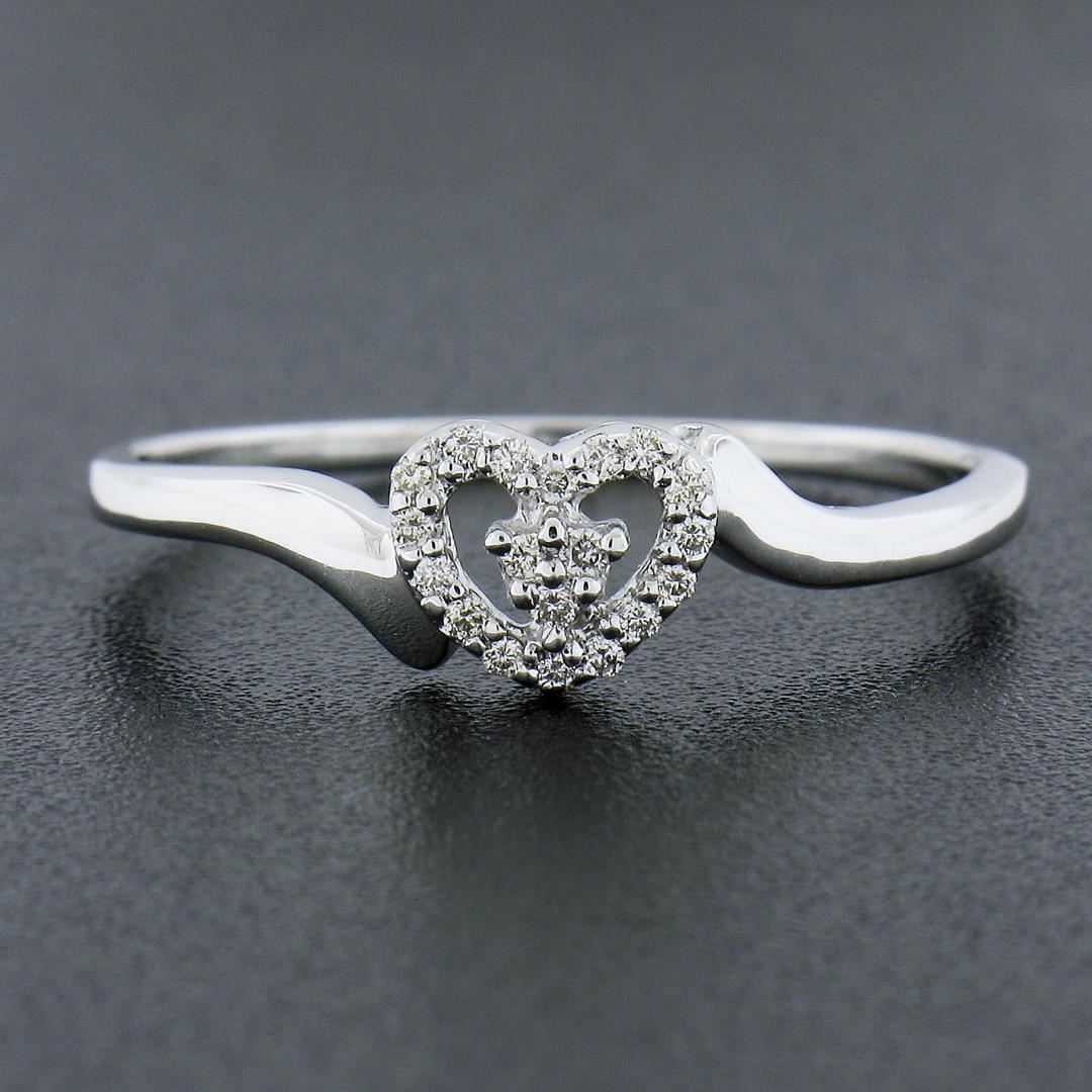A solid 14k white gold heart ring, with 19 round cut natural diamonds (G/H - VS2-SI2 ; 0.25ctw ). The ring is size 10.0, weighs a total of 1.83 grams, and measures 6.1mm wide.