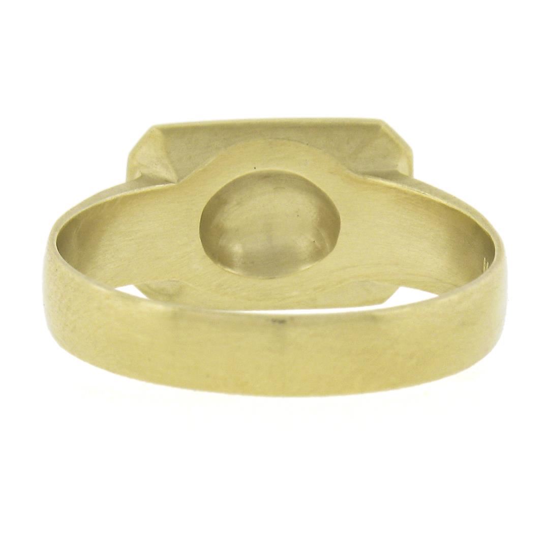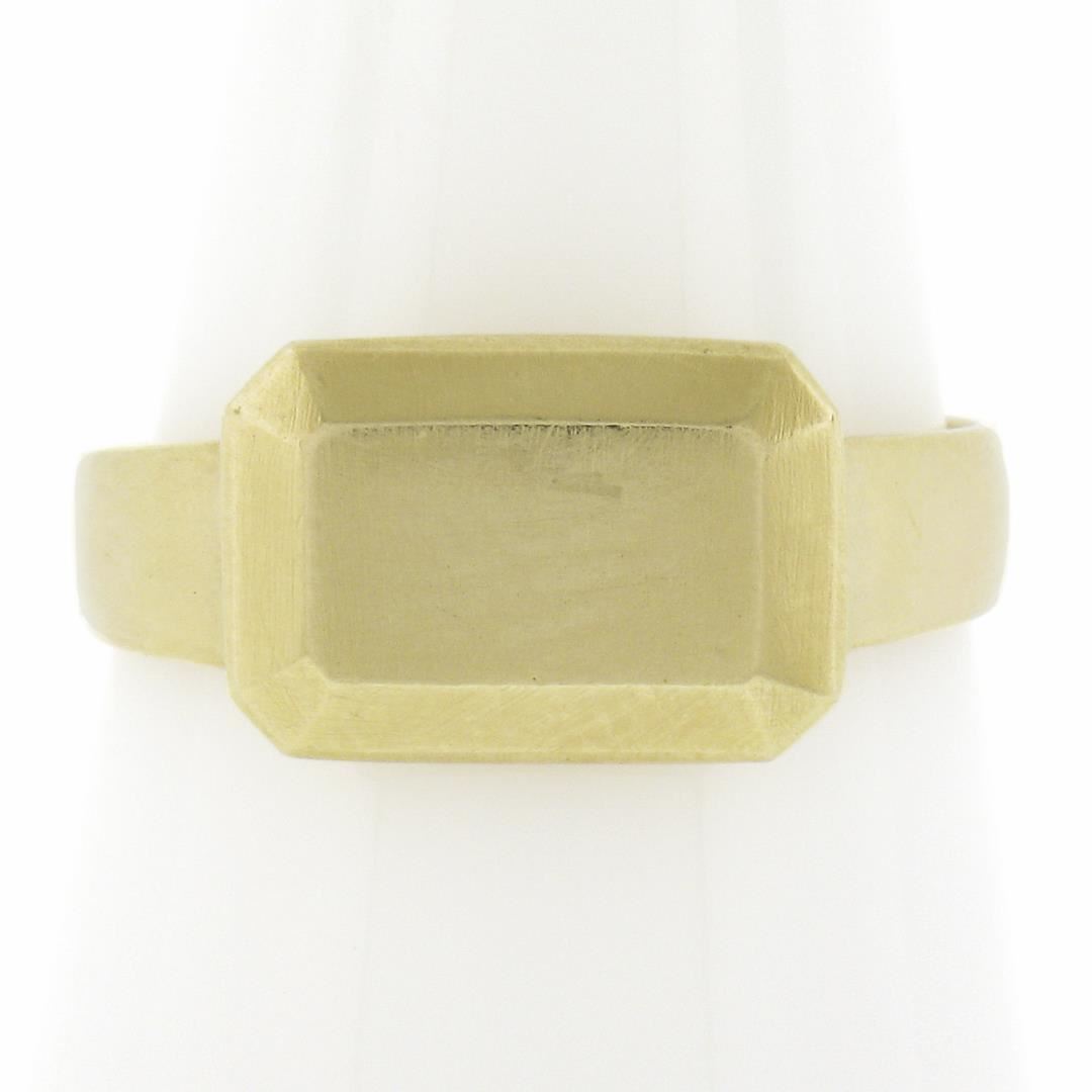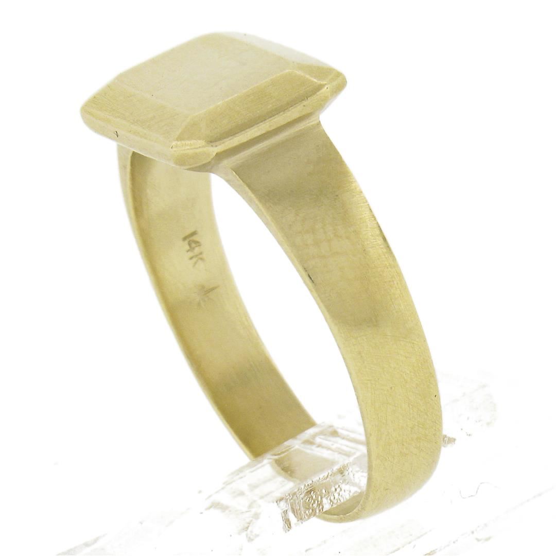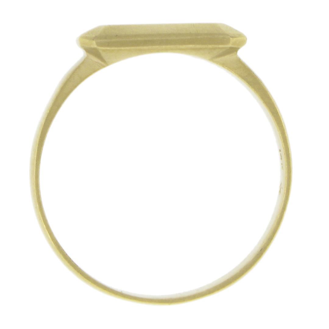 A solid 14k yellow gold signet ring. The ring is size 7.0, weighs a total of 4 grams, and measures 8.2mm wide.