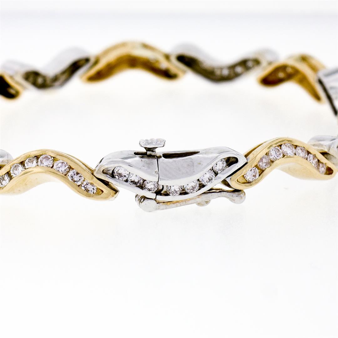 Solid 18K TT Gold 1.40 ctw Fine Round Brilliant Diamond Wavy Link Tennis Bracele