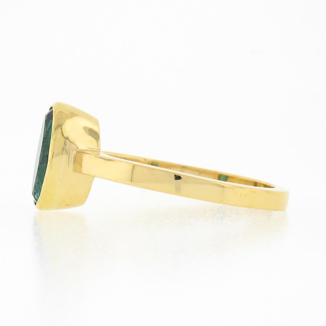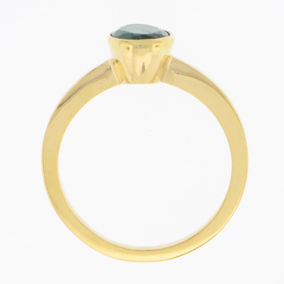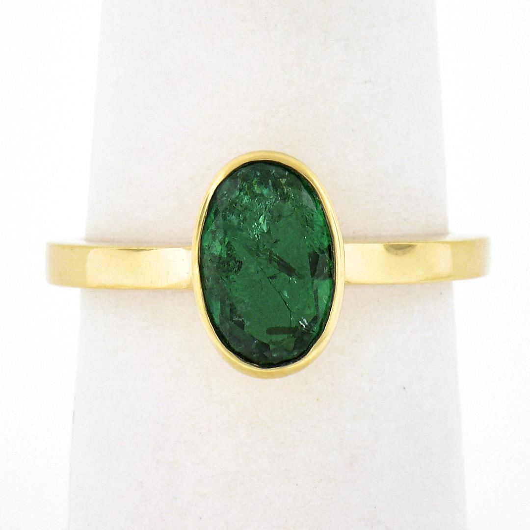 A solid 18k yellow gold solitaire ring, with 1 oval cut natural emerald (1.21ct). The ring is size 6.5, weighs a total of 4.26 grams, and measures 10.10mm wide.