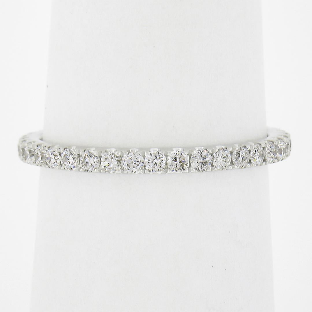 A solid 18k white gold eternity band ring, with 39 round cur natural diamonds ( G/H - VS2-SI2; 0.59ctw). The ring is size 7.0, weighs a total of 1.90 grams, and measures 2mm wide.