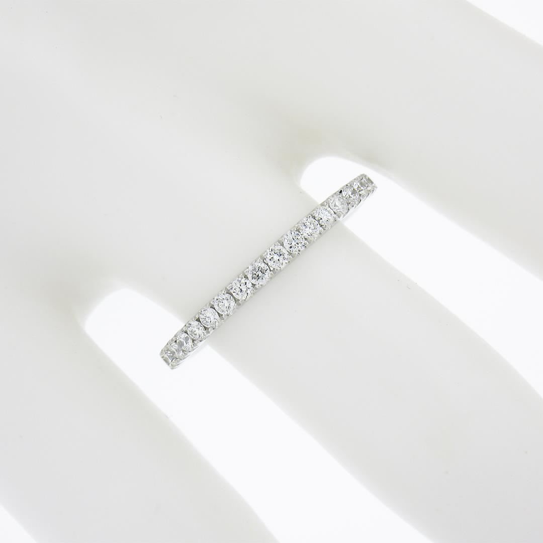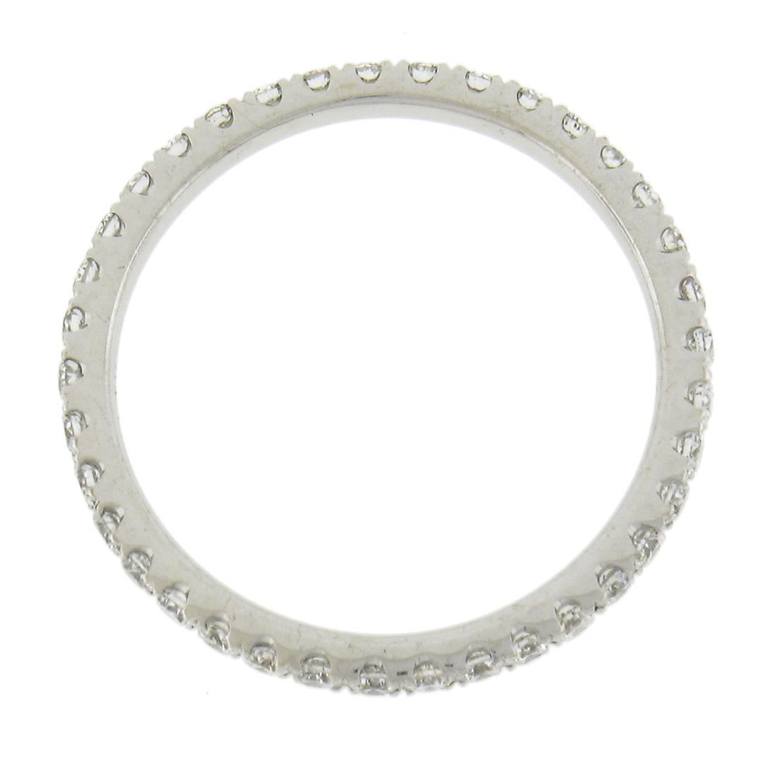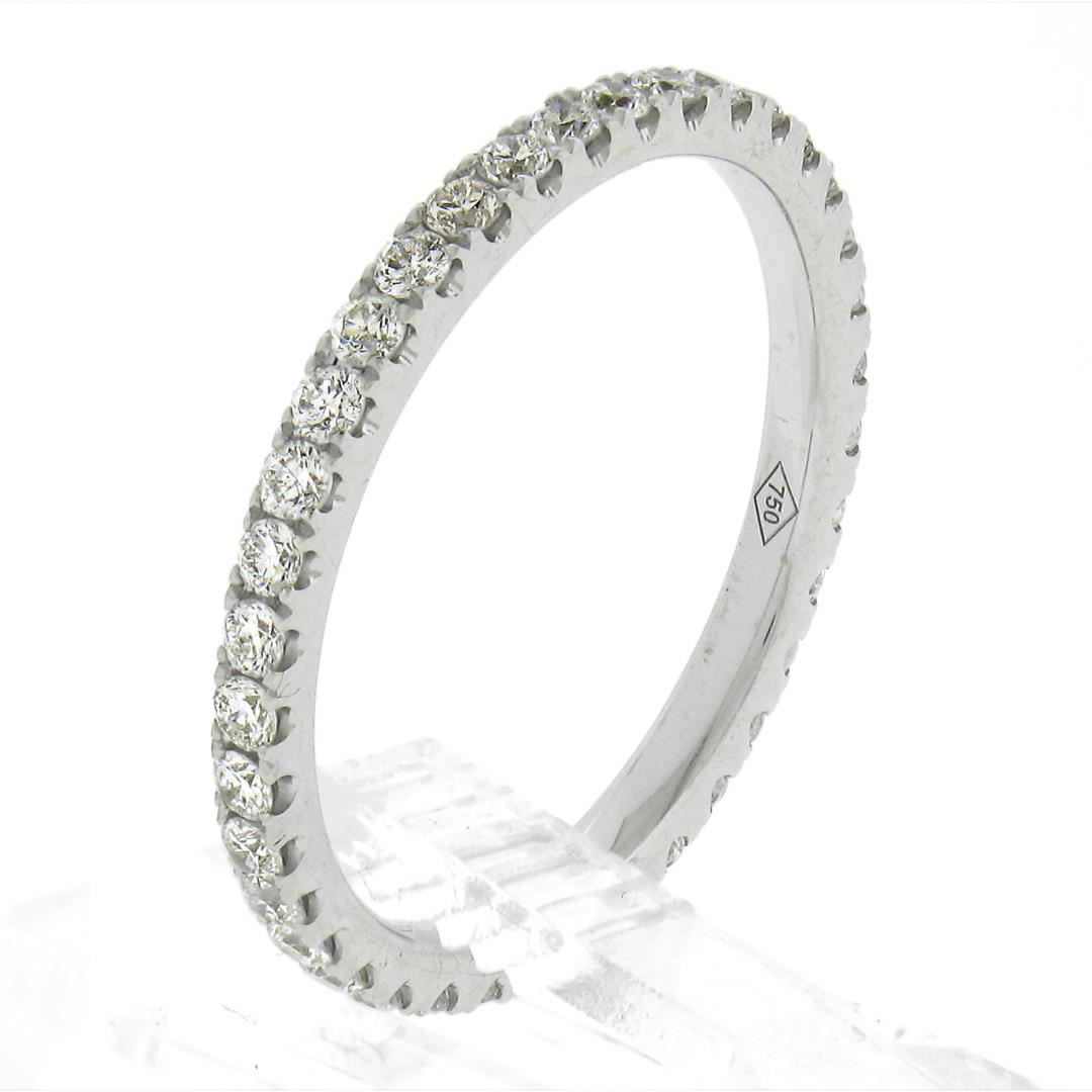 A solid 18k white gold eternity band ring, with 39 round cur natural diamonds ( G/H - VS2-SI2; 0.59ctw). The ring is size 7.0, weighs a total of 1.90 grams, and measures 2mm wide.