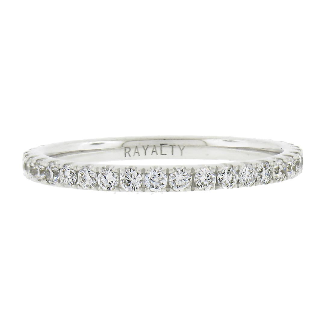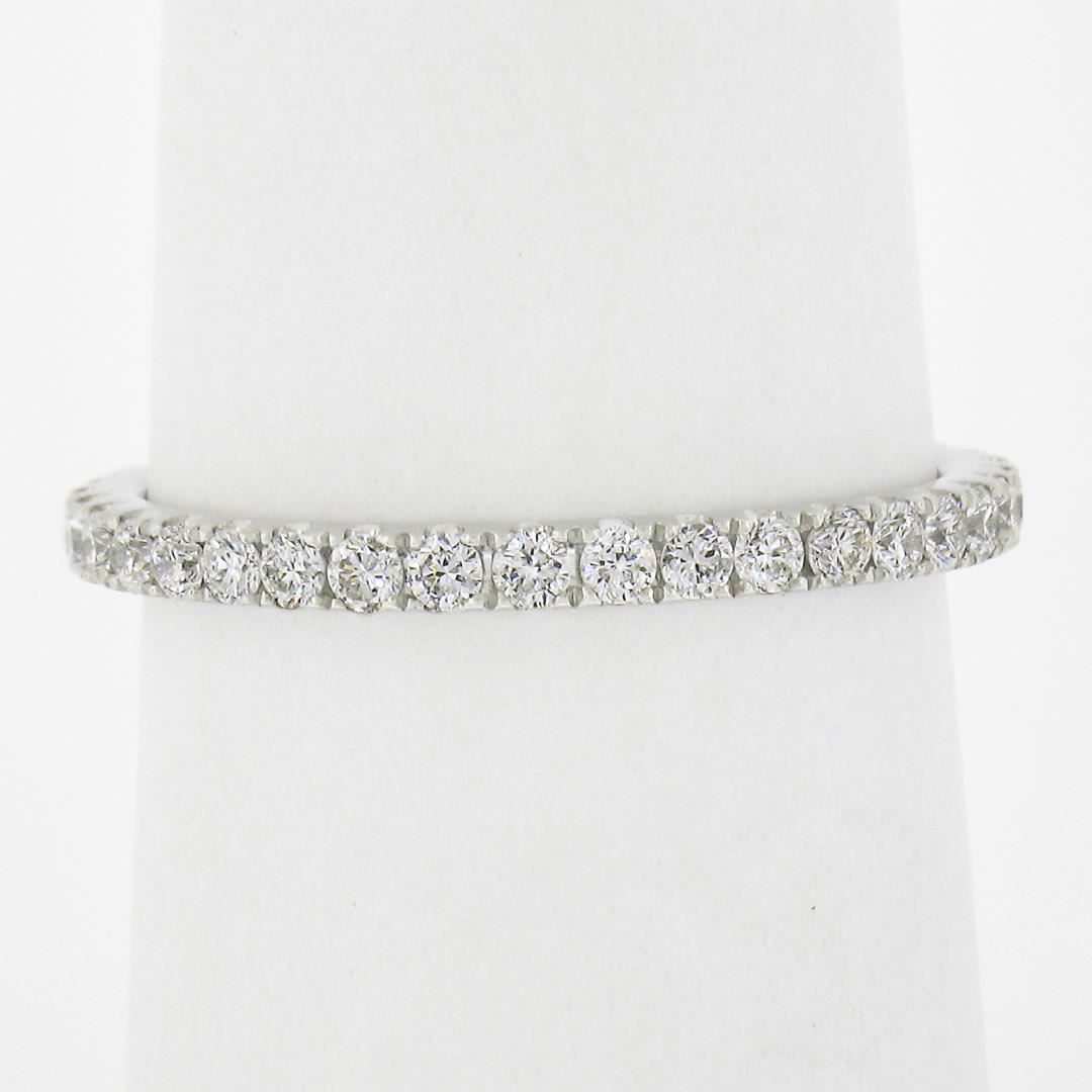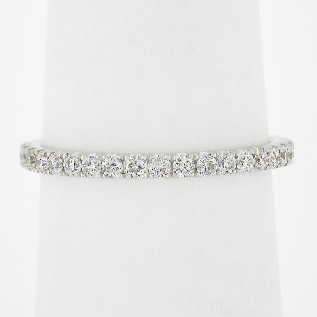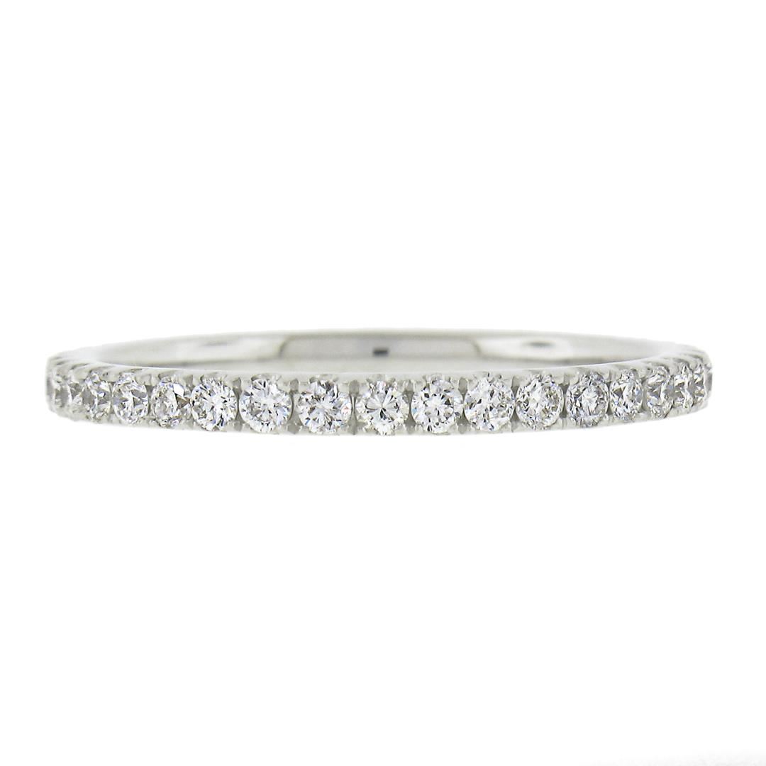 A solid 18k white gold eternity band ring, with 39 round cur natural diamonds ( G/H - VS2-SI2; 0.59ctw). The ring is size 7.0, weighs a total of 1.90 grams, and measures 2mm wide.