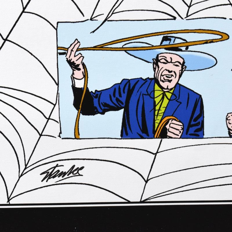 "Spider-Man 19" is a limited edition giclee on canvas presented by Marvel Comics. This piece is numbered and hand signed by the great Stan Lee (1922-2018). Includes Letter of Authenticity. Measures approx. 30" x 44" (image).