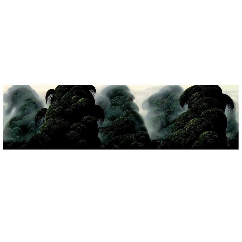 "Spirit Grove" is a limited edition serigraph on paper by Eyvind Earle (1916-2000). The piece is numbered, hand-signed by the artist, and accompanied by a certificate of authenticity. Measures approximately 10" x 35" (image).