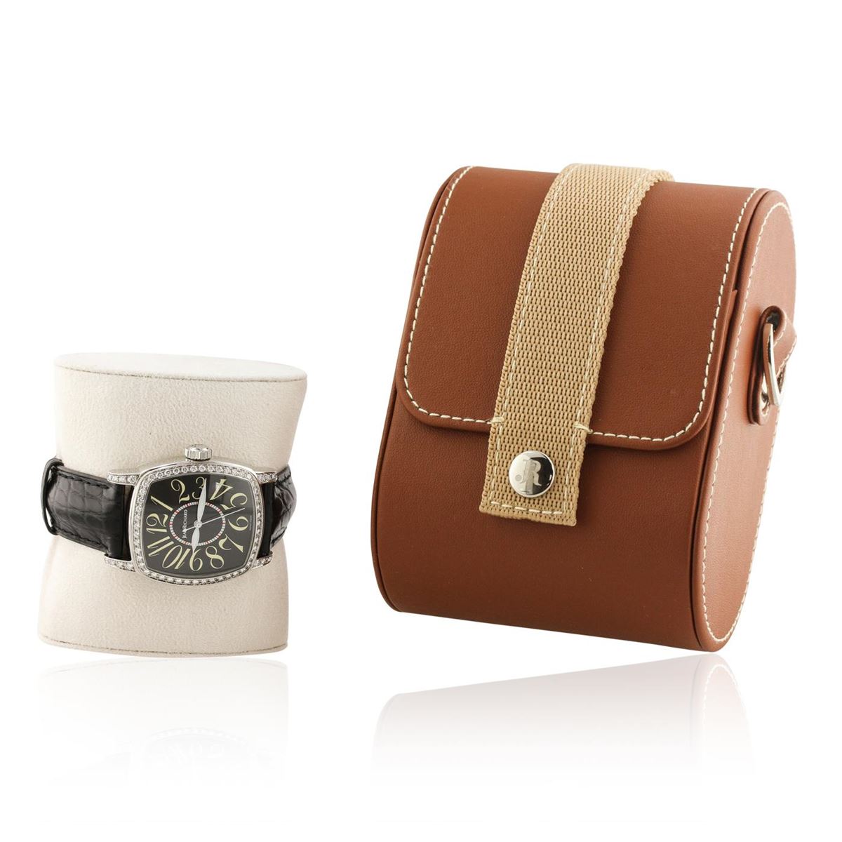 One ladies Stainless Steel Jean Richard TV Screen Swiss Wristwatch. This watch features 28mm Stainless Steel Case, Diamond Bezel, Black Dial with Arabic Numerals, Automatic Mechanical Movement, Analog Display, weighing a total of 71.7 grams.