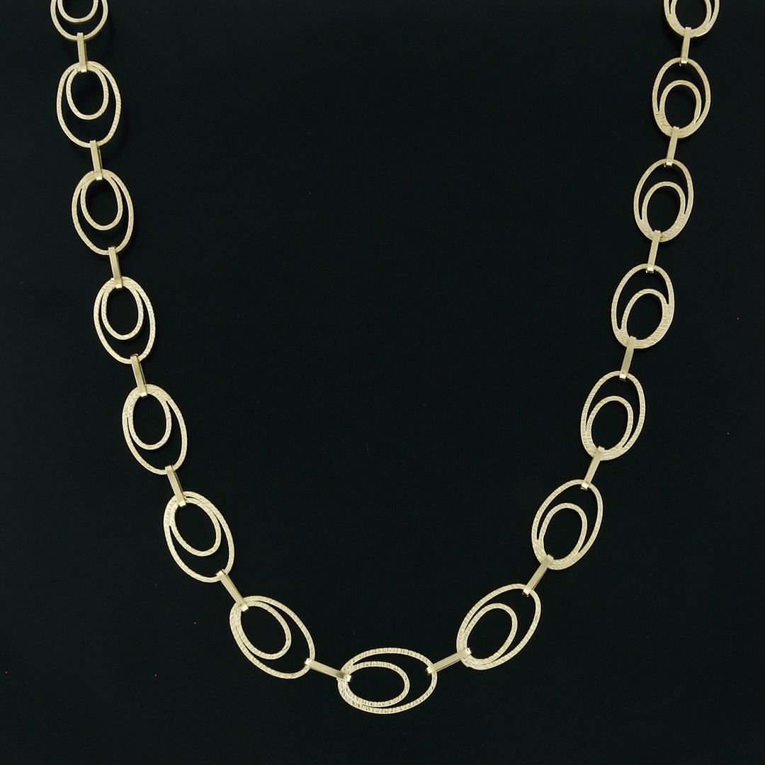 An estate solid 14k yellow gold link chain necklace. 28 inch dual oval link chain, 38.80 grams total weight.