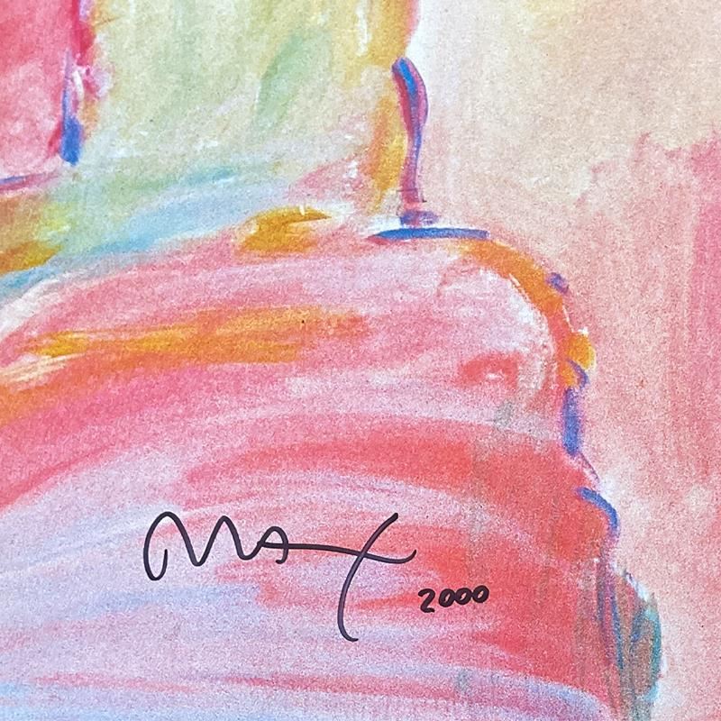 "Statue of Liberty III" is an offset lithograph on paper by Peter Max, hand signed by the artist. This piece comes custom framed. Includes Letter of Authenticity. Measures approx. 36" x 20" (frame), 32" x 16" (image). This item requires special handling and may have a longer than usual turnaround.