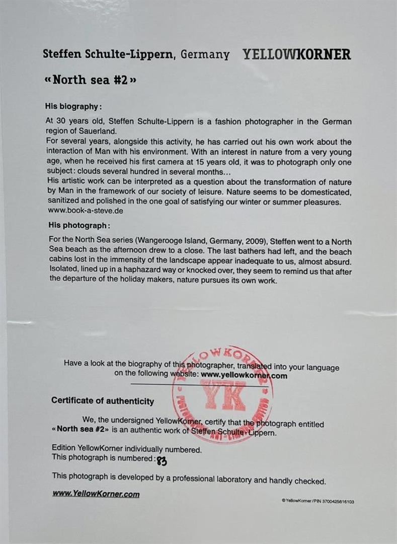 Steffen Schulte-Lippen Germany Nort Sea #2 YellowKorner Certified Photograph. Certificate of Authenticity from YellowKorner affixed to the back. Matted Dimensions 16"x20". Protected with Clear Mylar Sleeve.