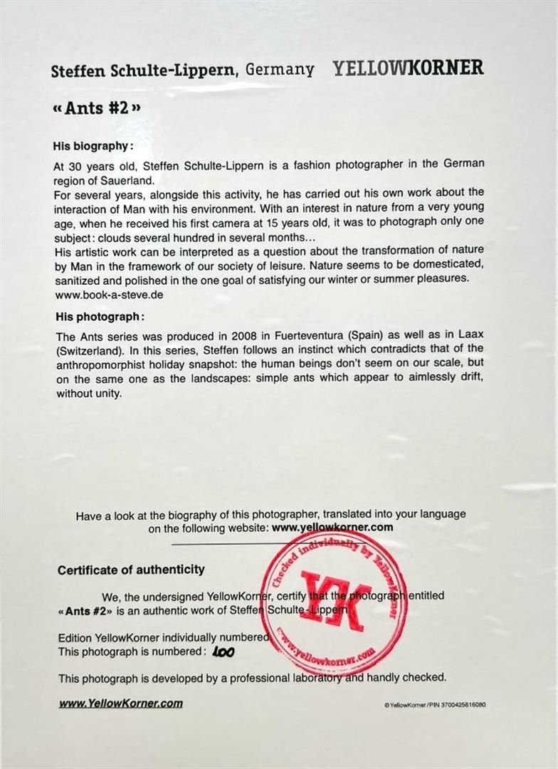 Steffen Schulte Lippern Germany Ant #2 YellowKorner Certified Photograph. Certificate of Authenticity from YellowKorner affixed to the back. Matted Dimensions 16"x20". Protected with Clear Mylar Sleeve.