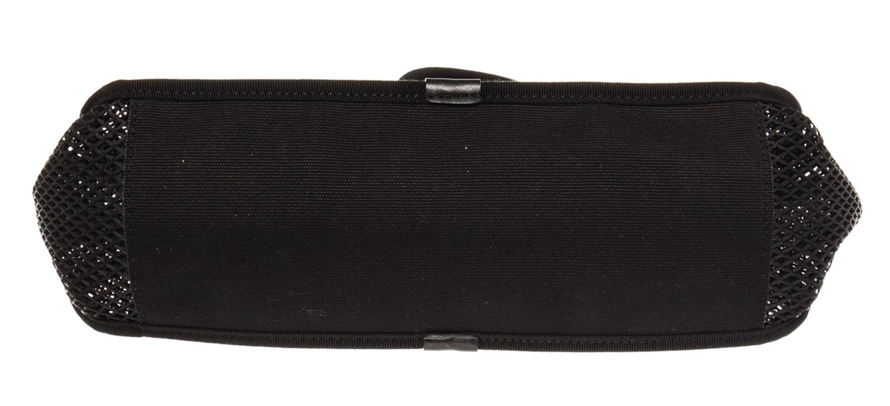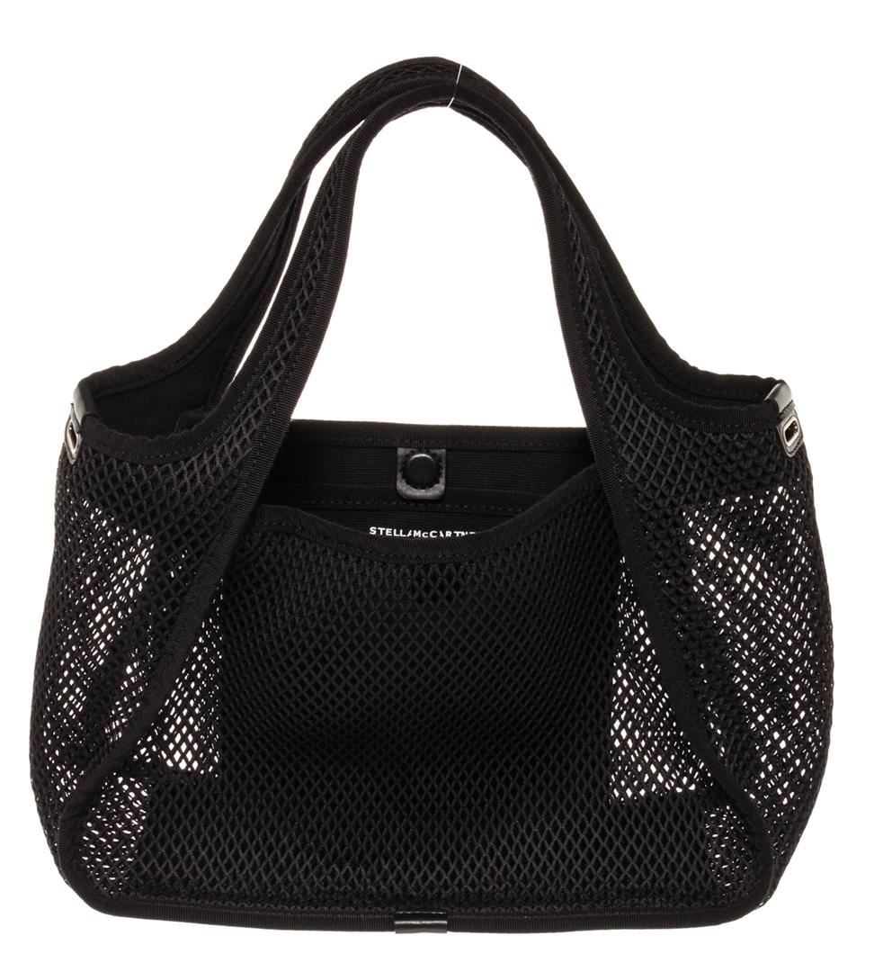 One Stella McCartney Black Canvas Net Alter Tote Bag. Item is sold AS-IS. All available information is listed in the description and shown in the photo. Black canvas with netting accent Stella McCartney Alter tote bag with silver-tone hardware, dual flat handles, a detachable black leather shoulder strap, an open top and an internal pocket with white printed logo accent. Height: 12.25" Width: 15.25" Depth: 5.75" Shoulder Strap Drop: 7.75"