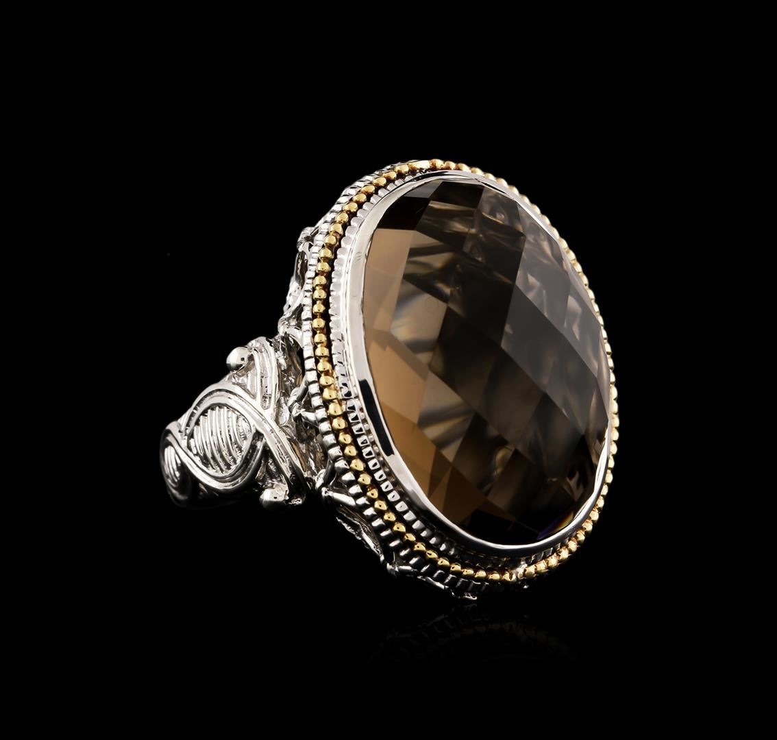 One ring featuring: Silver weighing 14.90 grams containing one smokey quartz center stone with a total weight of 16.15ct.