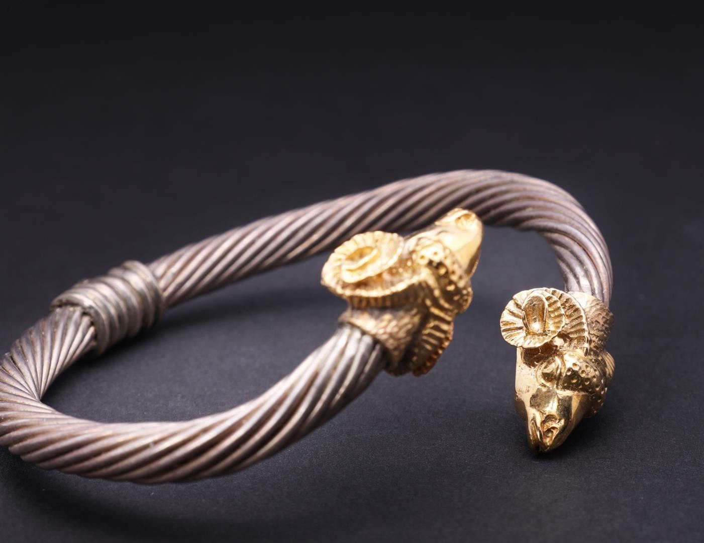 Sterling Silver & 18K Yellow Gold Crossover Bracelet by Ricardi. Total weight 31 gm. Estimated retail value $900.