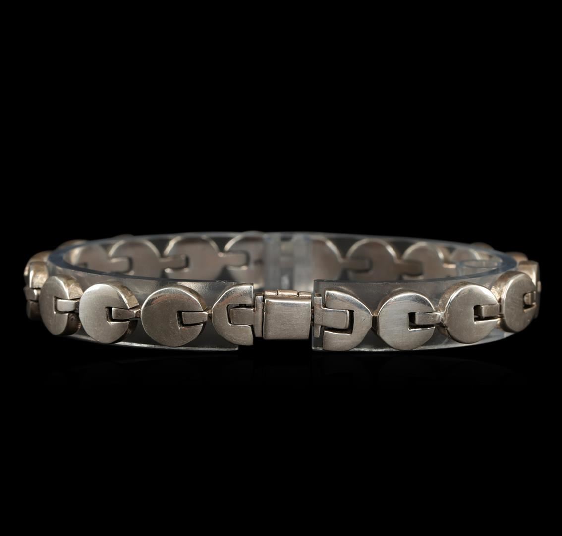 One of a kind high fashion sterling silver Bracelet weighing 36.1 grams. This sterling silver promises a lasting shine.