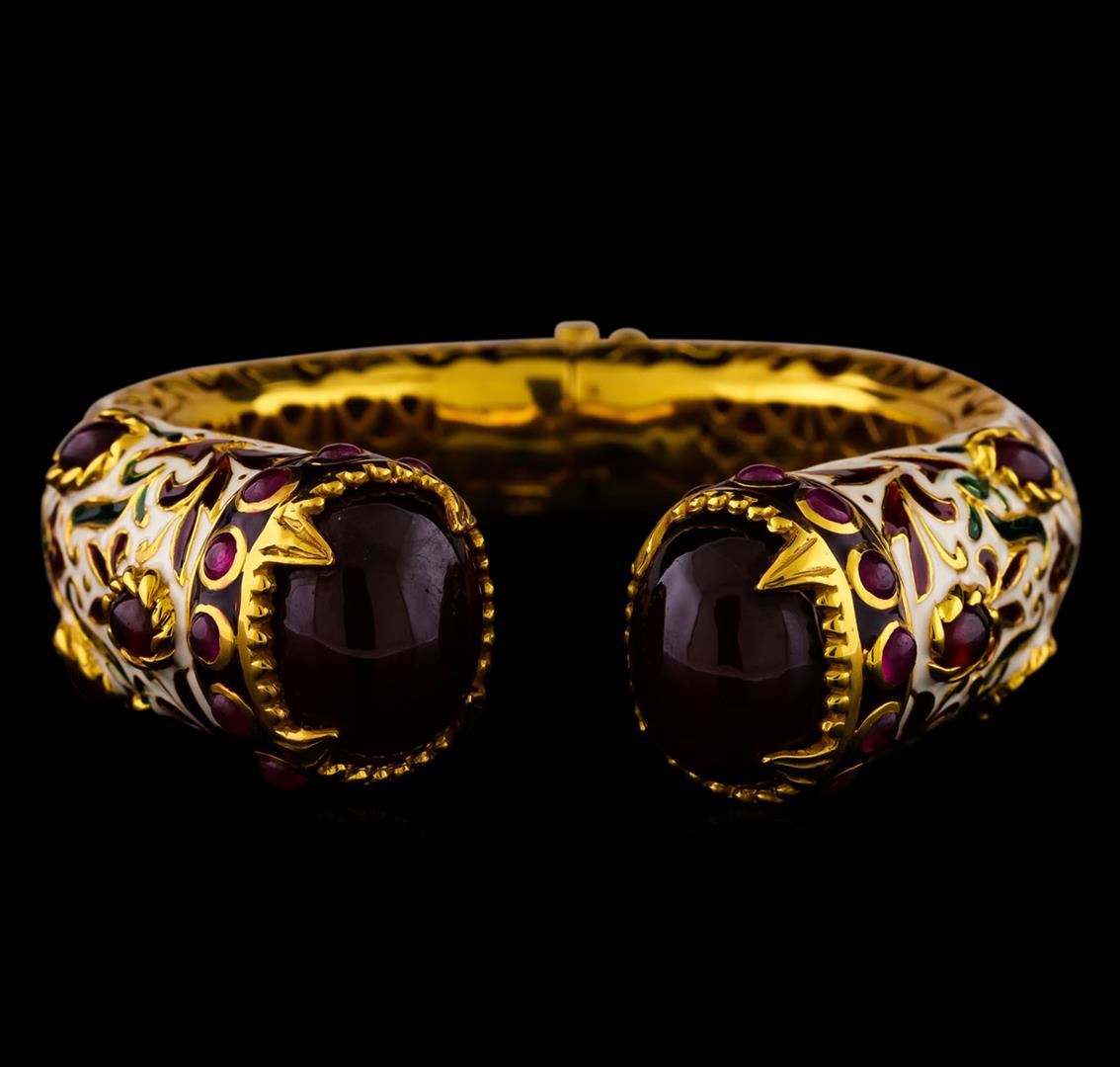 One of a kind high fashion sterling silver Bracelet weighing 105.1 grams. Containing: Ruby, Multi-color Enamel Inlay. This sterling silver promises a lasting shine.