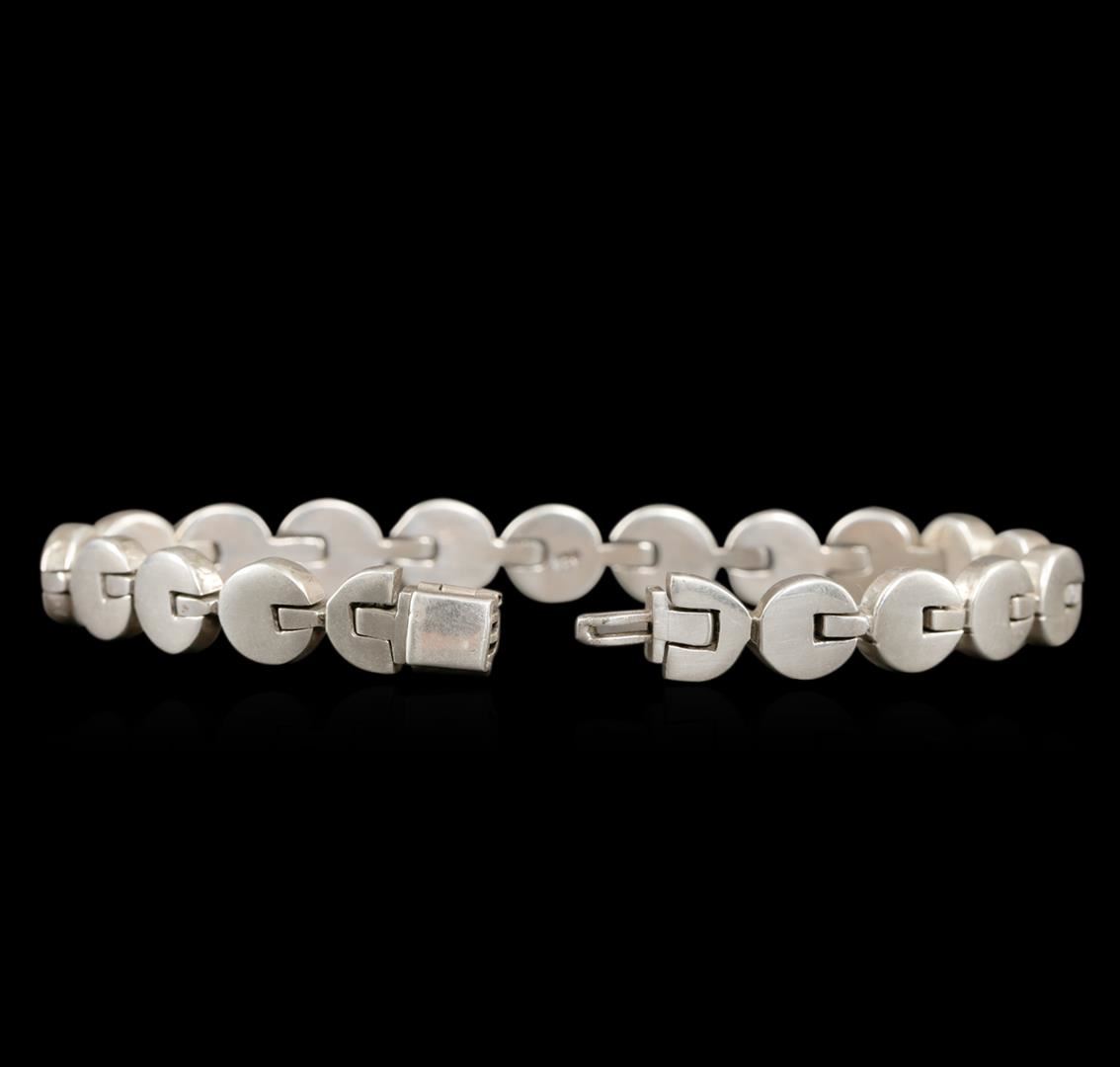 One of a kind high fashion sterling silver Bracelet weighing 36.1 grams. This sterling silver promises a lasting shine.