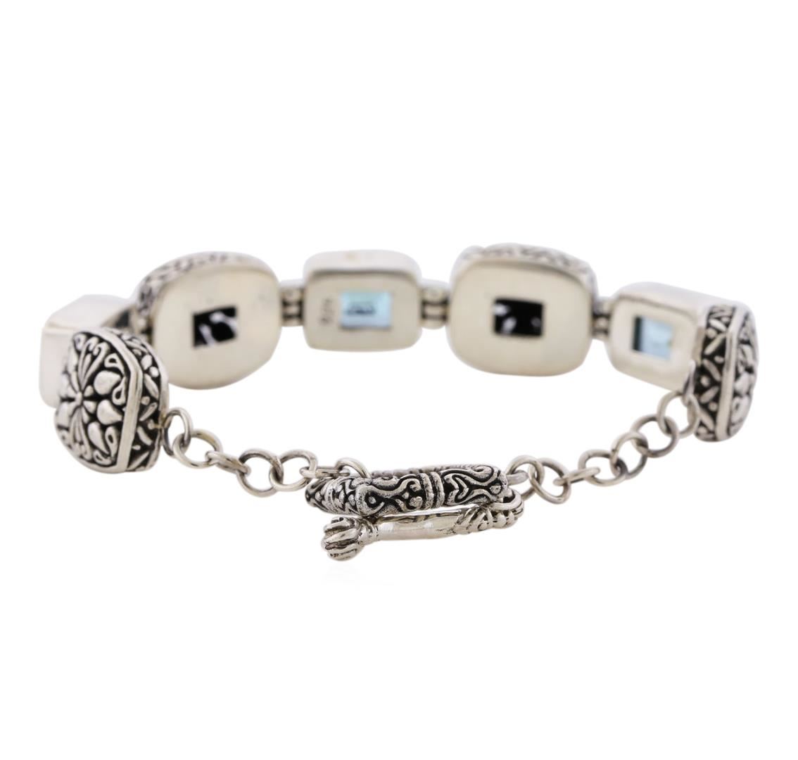 One of a kind high fashion sterling silver Bracelet weighing 22.4 grams. Containing: Blue Topaz. This sterling silver promises a lasting shine.