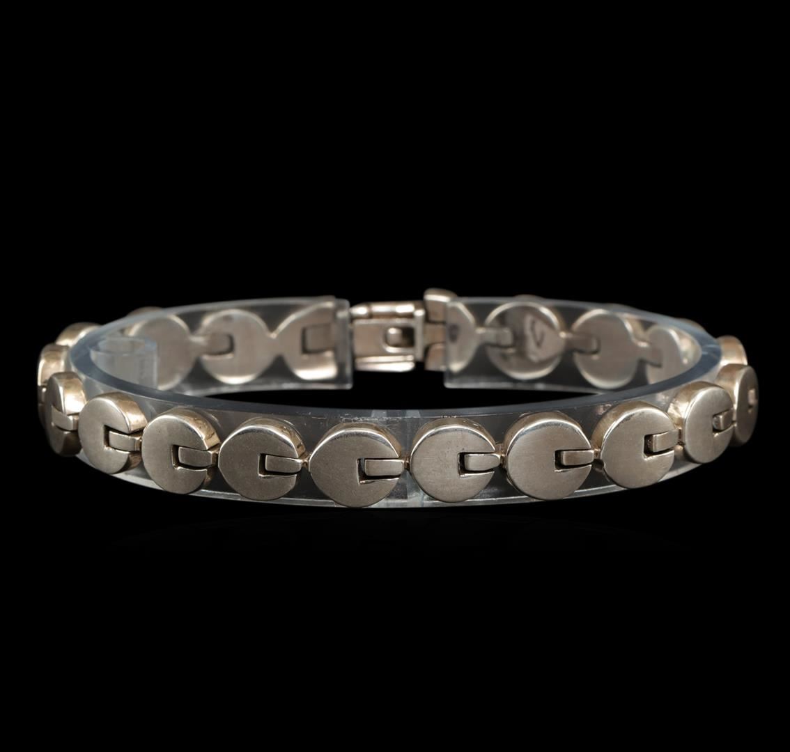 One of a kind high fashion sterling silver Bracelet weighing 36.1 grams. This sterling silver promises a lasting shine.