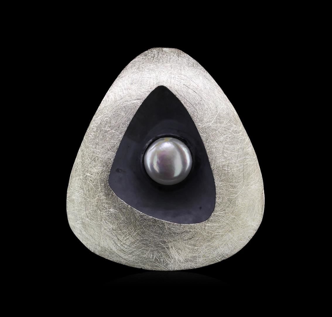 One of a kind high fashion sterling silver Earrings and Pendant Jewelry Suite weighing 21.8 grams. Containing: Natural Button Pearl. This sterling silver promises a lasting shine.