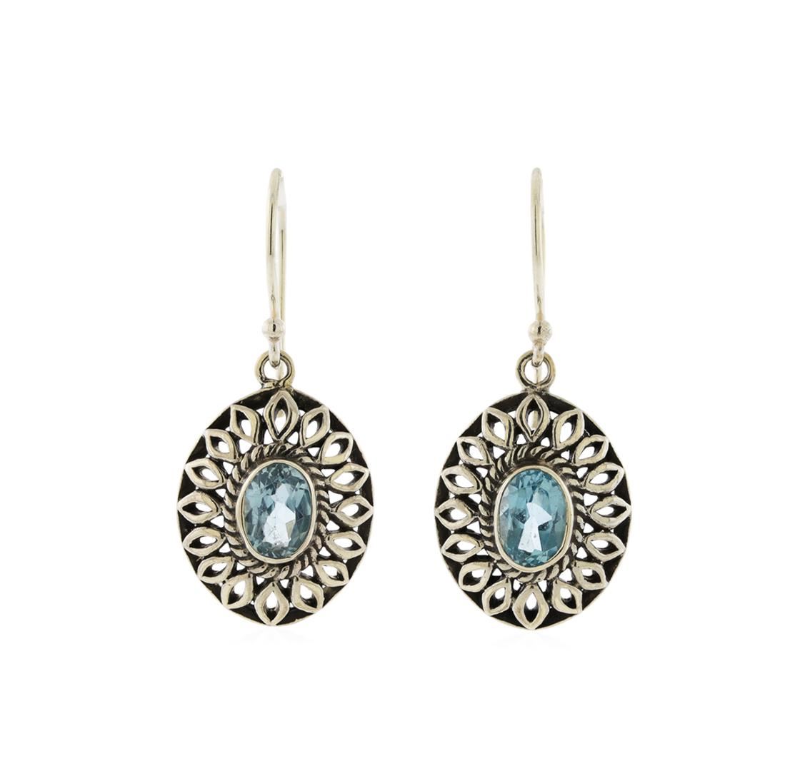 One of a kind high fashion sterling silver Earrings weighing 5.4 grams. Containing: Blue Topaz. This sterling silver promises a lasting shine.