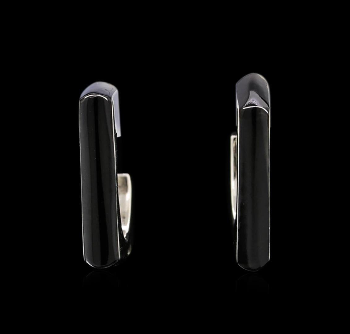One of a kind high fashion sterling silver Earrings weighing 2.9 grams. Containing: Black Enamel Inlay. This sterling silver promises a lasting shine.