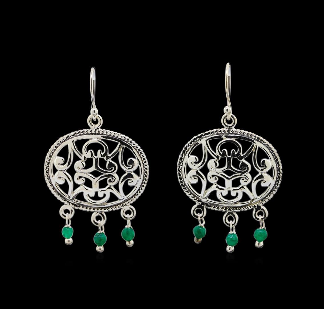 One of a kind high fashion sterling silver Earrings weighing 7.5 grams. Containing: Emerald. This sterling silver promises a lasting shine.