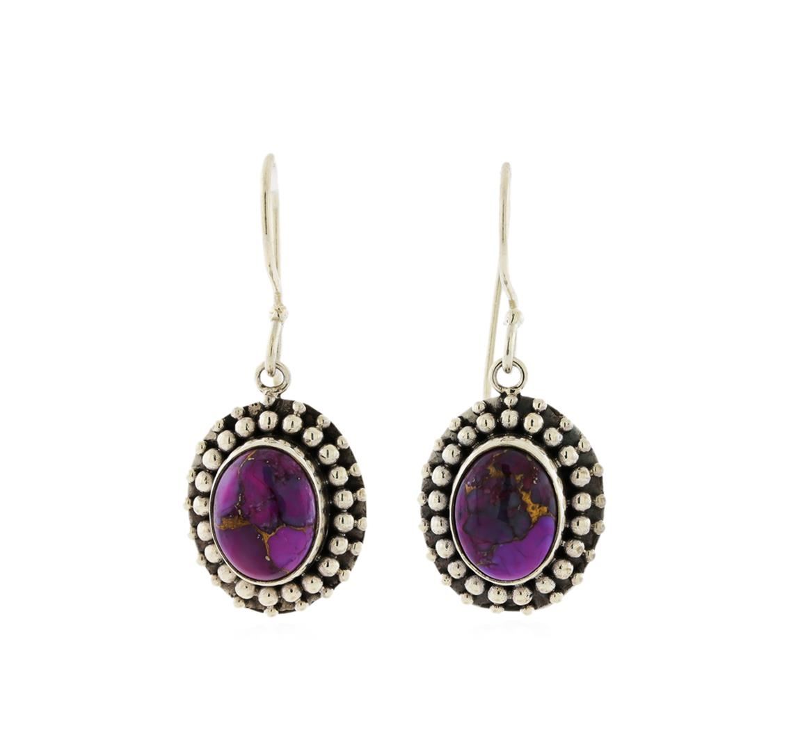 One of a kind high fashion sterling silver Earrings weighing 5.6 grams. Containing: Dyed Purple Turquoise. This sterling silver promises a lasting shine.