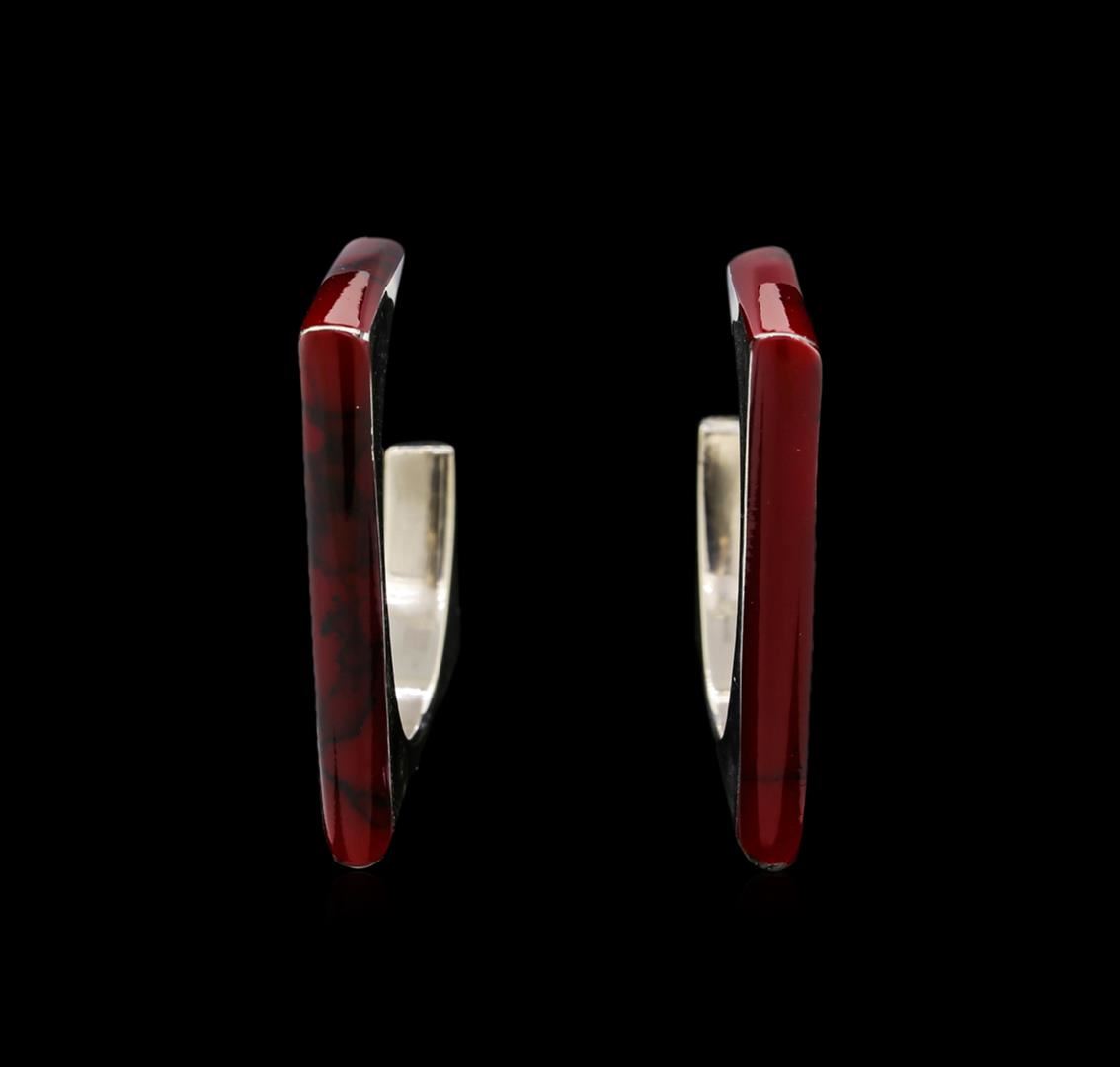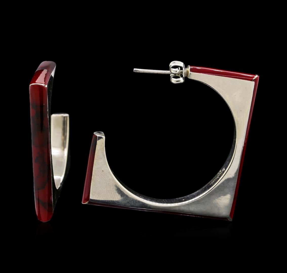 One of a kind high fashion sterling silver Earrings weighing 8.6 grams. Containing: Red Enamel Inlay. This sterling silver promises a lasting shine.