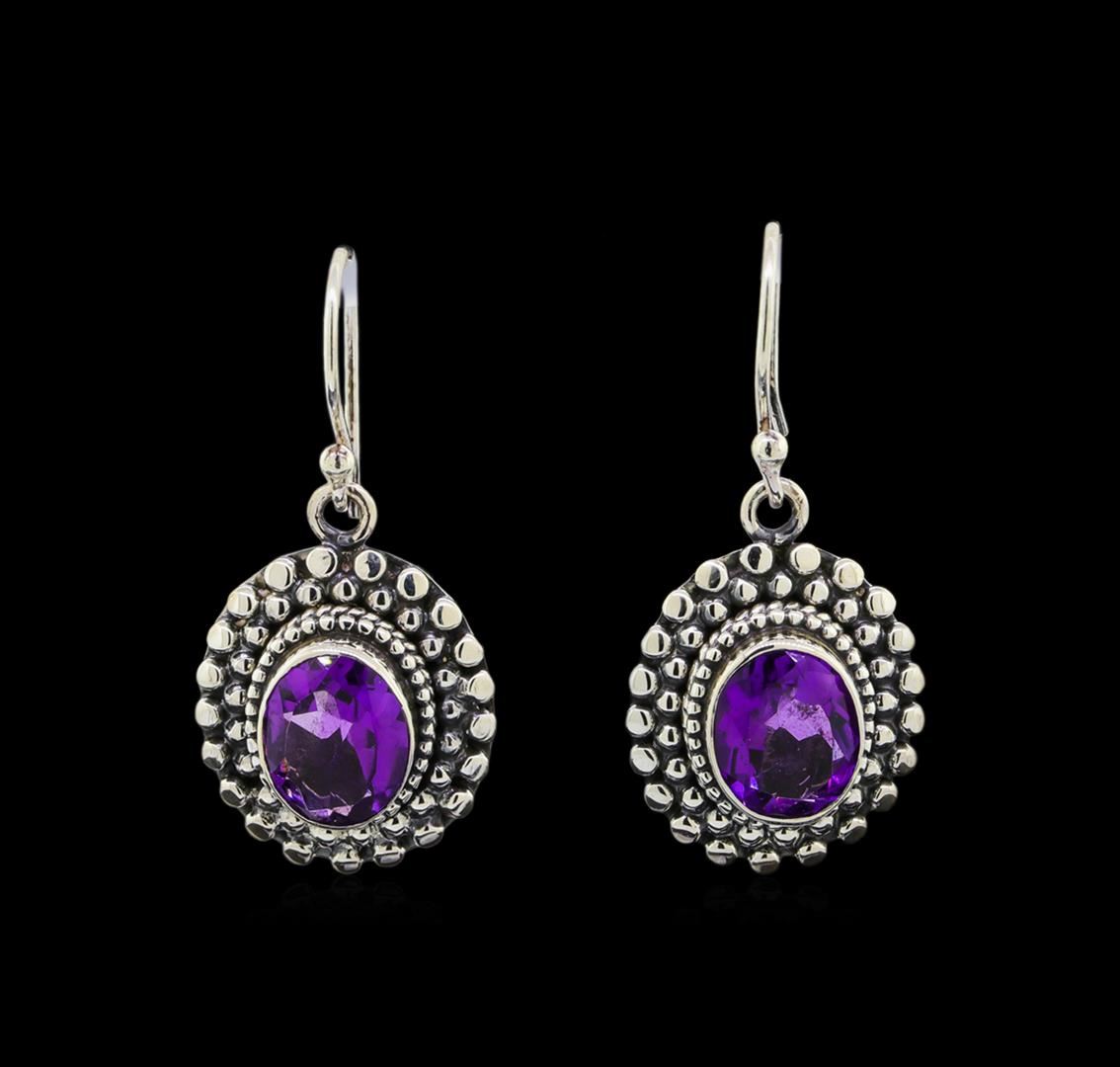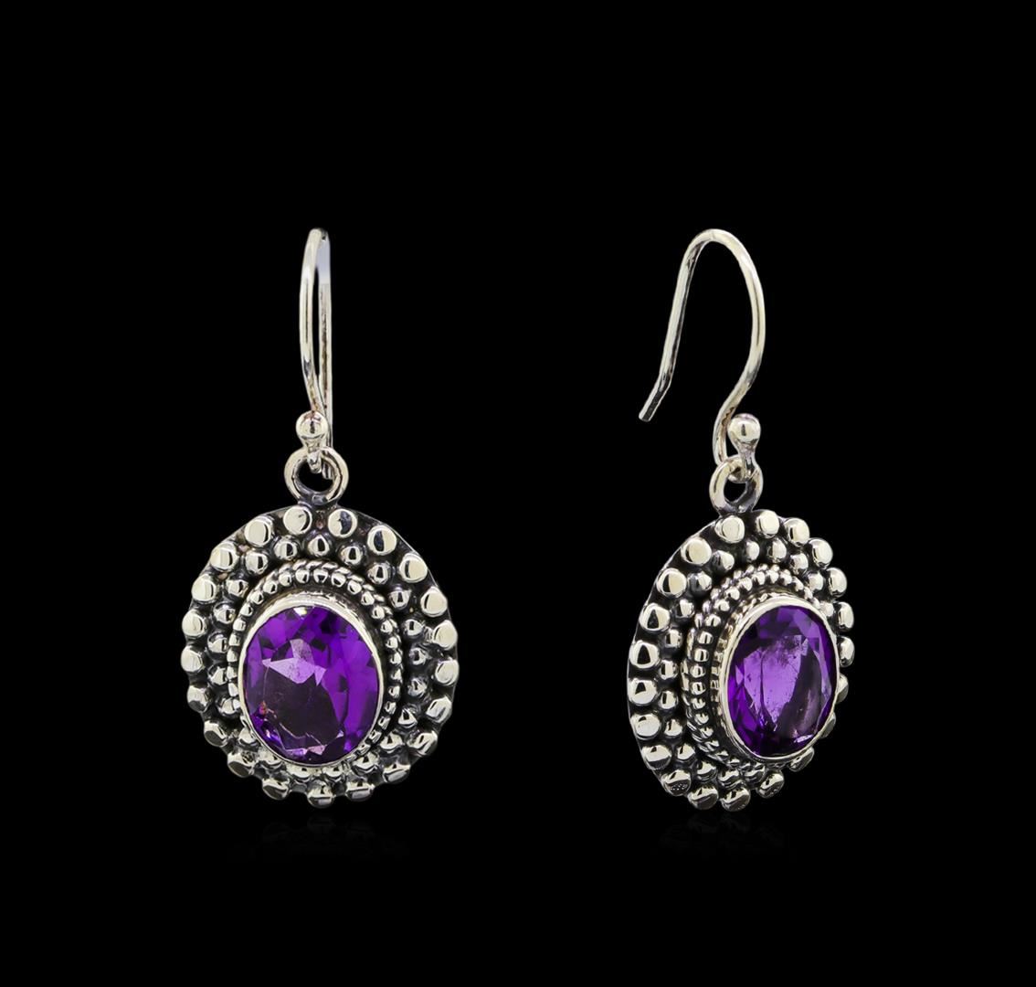 One of a kind high fashion sterling silver Earrings weighing 9.9 grams. Containing: Amethyst. This sterling silver promises a lasting shine.