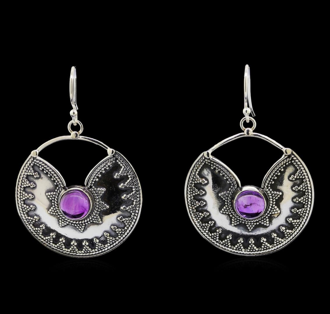 One of a kind high fashion sterling silver Earrings weighing 12.7 grams. Containing: Amethyst. This sterling silver promises a lasting shine.